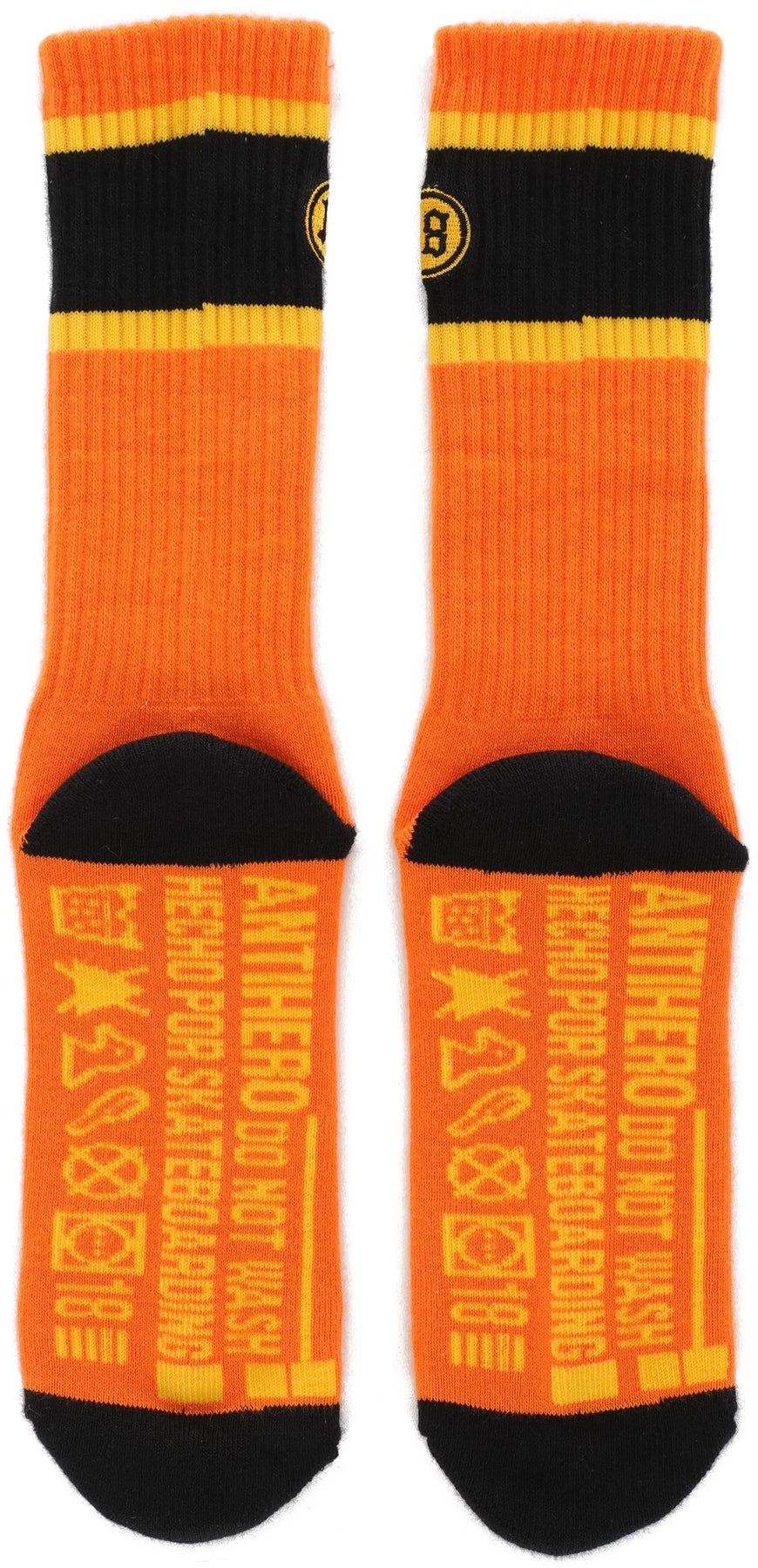 The Anti Hero Hecho Por Socks are built for riders needing all-day comfort and style. Made from an 87% cotton, 12% polyester, and 1% spandex blend, these crew socks provide a soft, breathable feel with enough stretch for a snug fit. Sitting at the calf, they feature contrast heel and toe panels plus jacquard stripes for a classic yet bold skate look. The standout Anti Hero embroidery on the leg adds authentic branding for riders who want their gear to match their attitude.