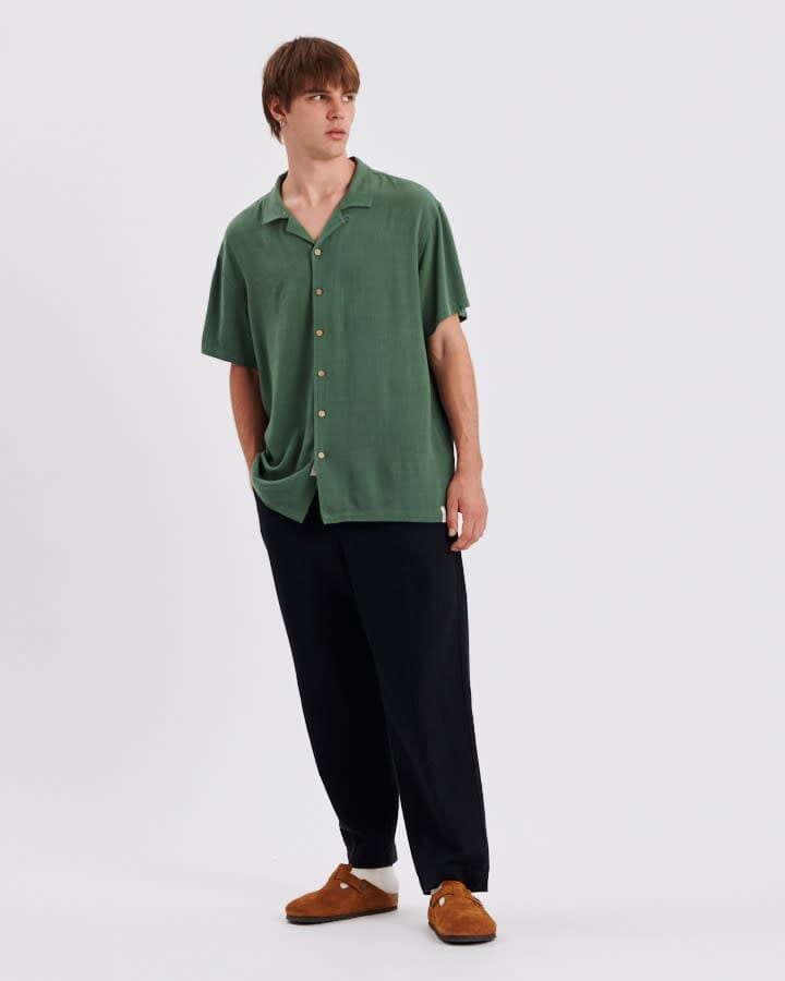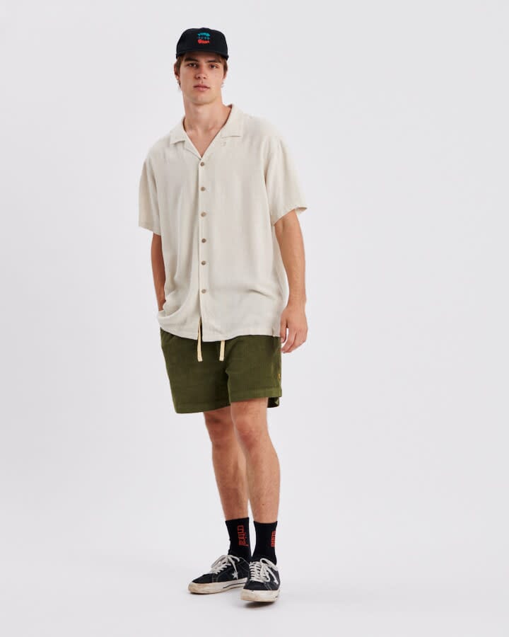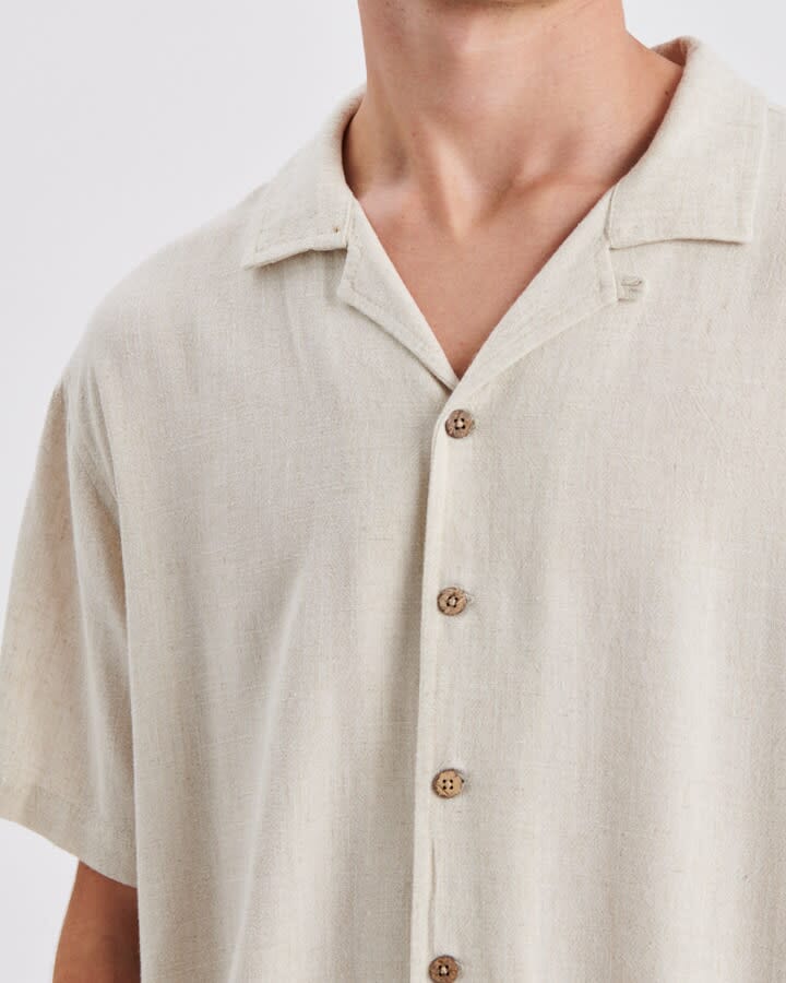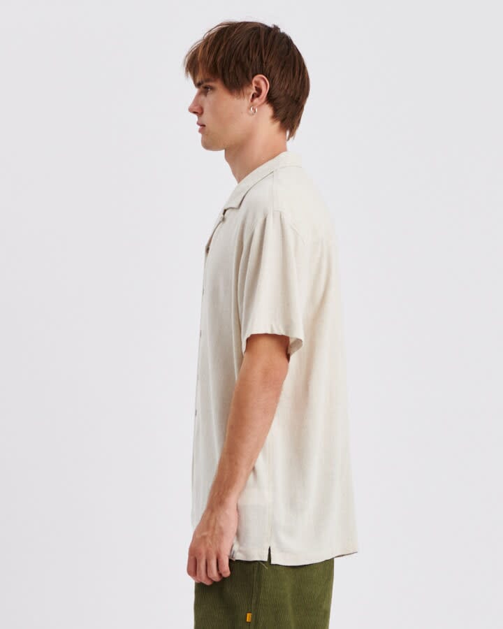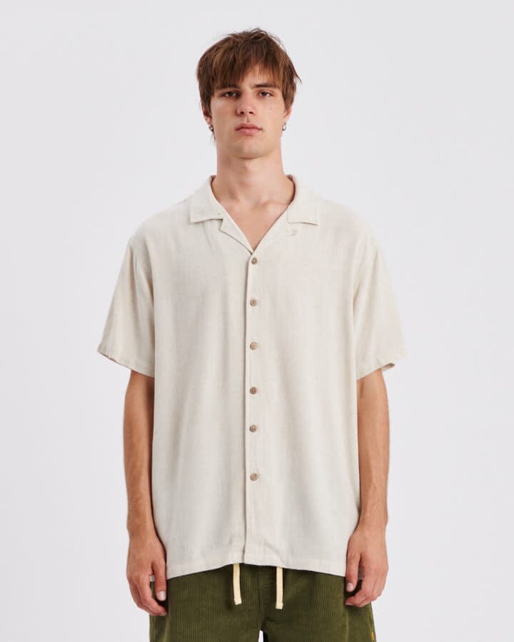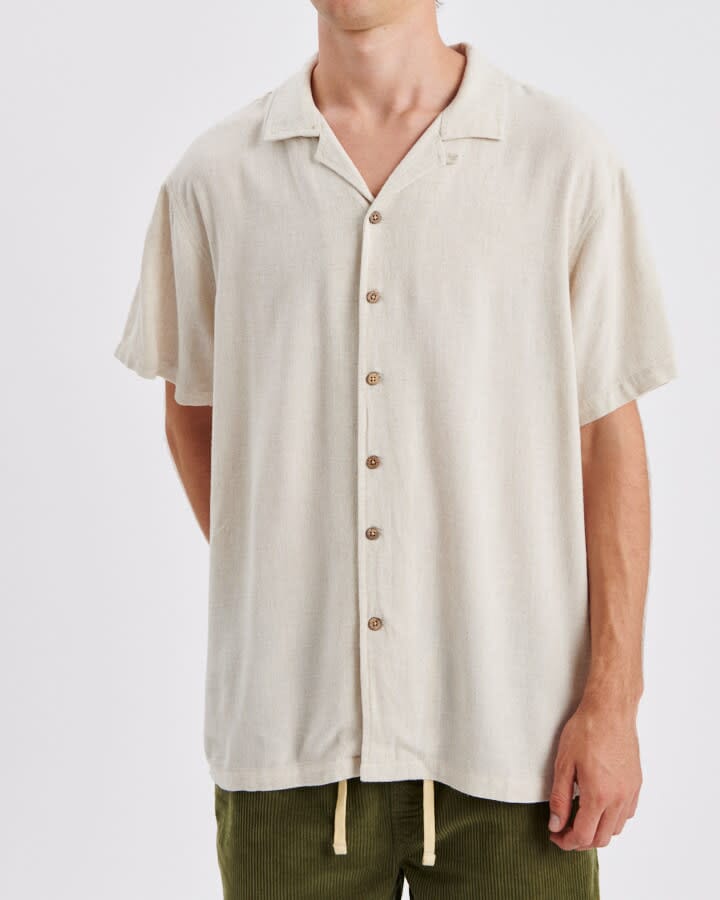 Effortless summer style meets laid-back comfort with the Ernie Resort Shirt from Critical Slide Society. Crafted from a breathable linen blend, the Ernie Resort Shirt features a relaxed fit with a straight hem and small side vents for easy movement. The classic resort collar brings a chilled holiday vibe, complemented by natural coconut buttons that add a subtle, unique touch. This shirt is perfect for beach days, casual nights, or cruising town with mateys. With its lightweight fabric and roomy fit, the Ernie Resort Shirt delivers all-day comfort and timeless style.