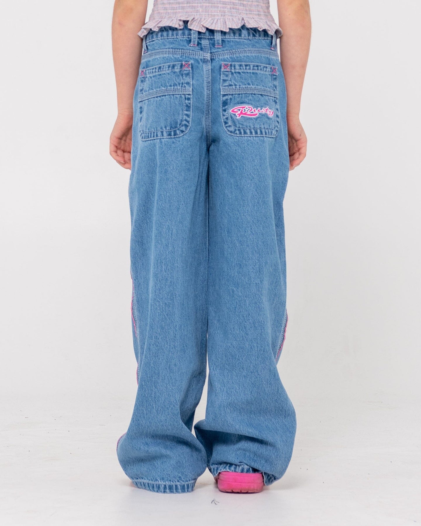 Relaxed fit with playful style—Rusty Flip Girl Low Rise Jeans offer everyday comfort with cool embroidered details.
