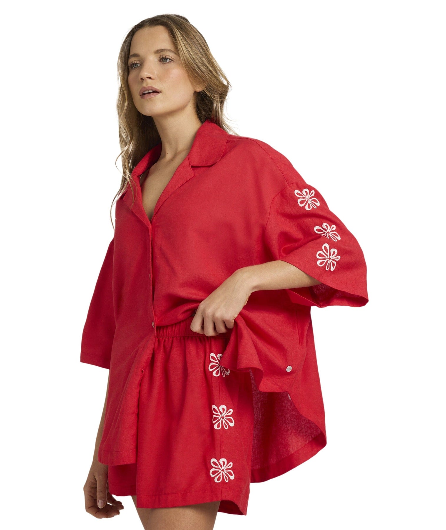 - Loose boxy shape for airflow and a naturally draped silhouette.