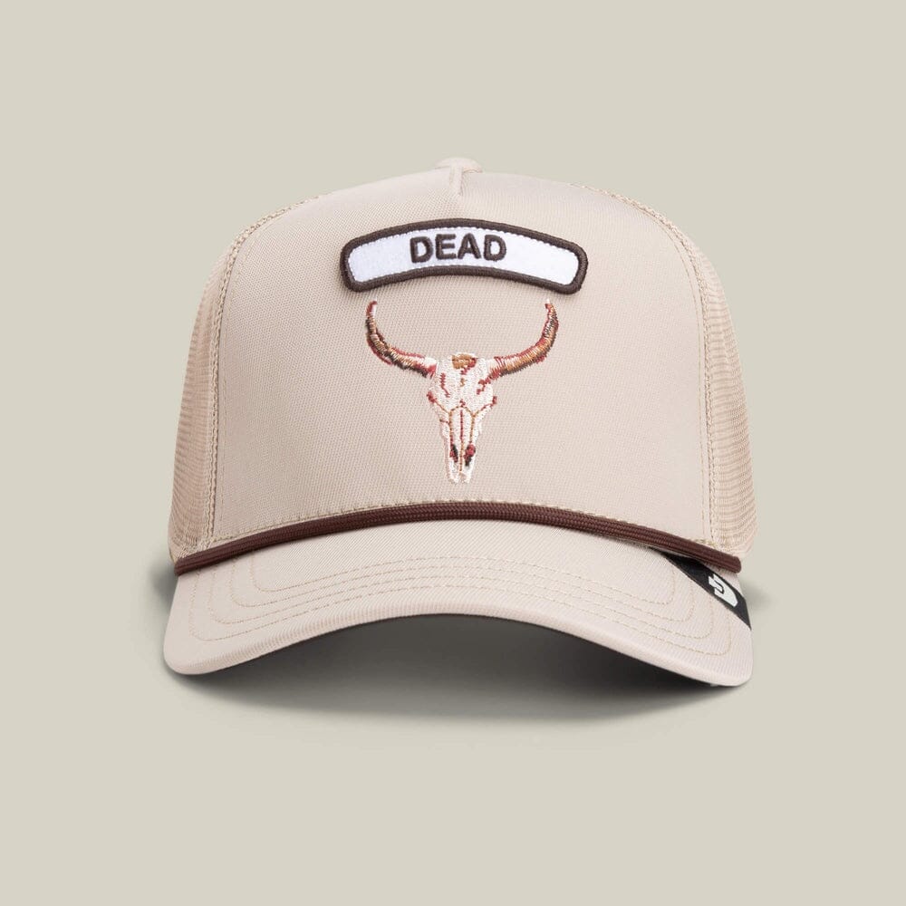 The Goorin Bros GB2 Skull Cap brings rugged western flair paired with modern trucker style. Featuring a structured front panel in deep biscuit and maroon hues, it displays a bold embroidered skull patch that captures fearless individuality. The breathable mesh back ensures comfort and airflow during long wear. Designed with a 2.5-inch curved brim and traditional rope accent, it combines classic trucker aesthetics with a touch of rebellion. Made from a durable blend of 98% polyester and 2% spandex, this cap promises lasting comfort and form retention. An adjustable snapback closure offers a tailored fit for head sizes ranging from 55 to 61 cm, making it a striking statement piece for streetwear and skate culture enthusiasts.