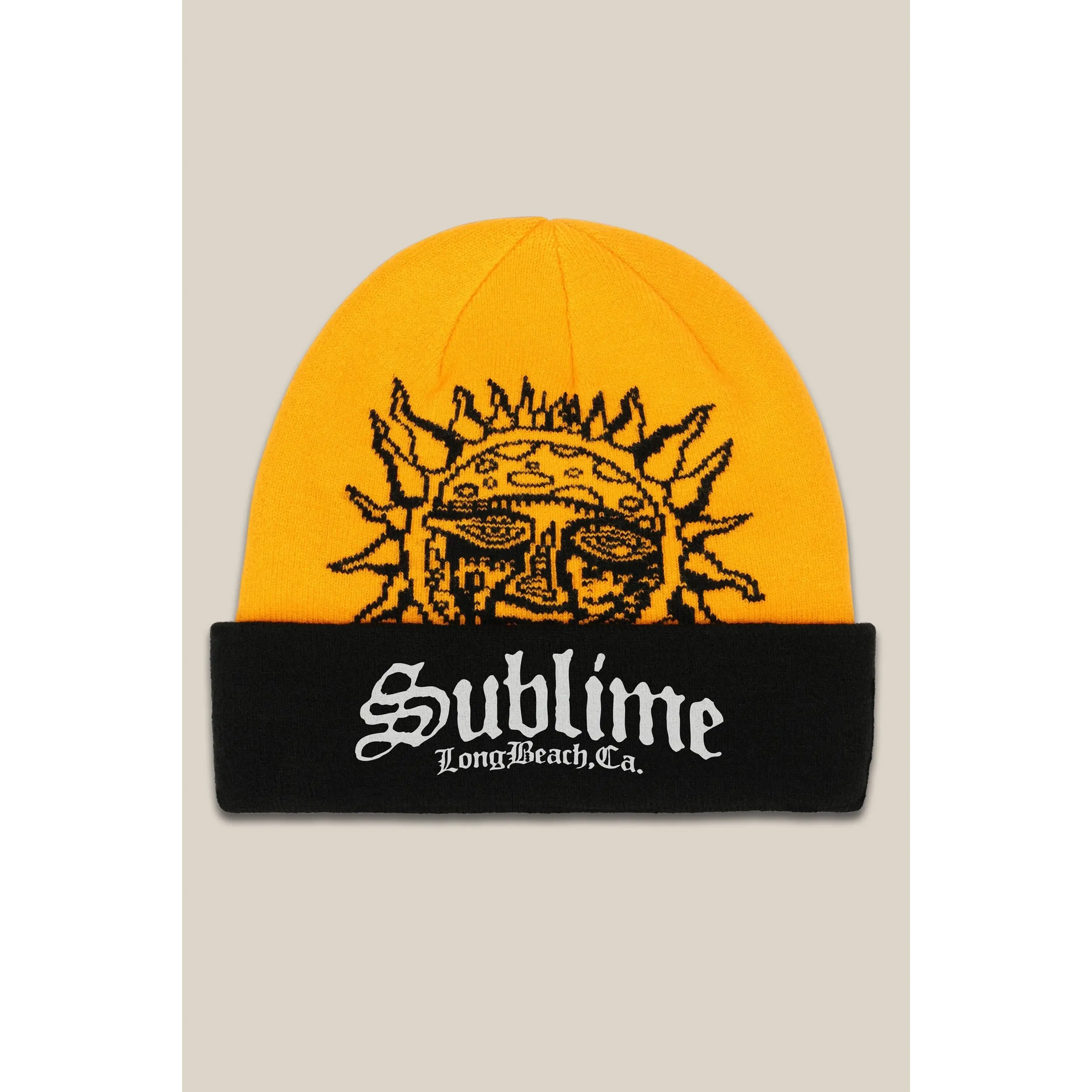Toasty acrylic knit beanie capturing Sublime collab style for cold lift mornings.