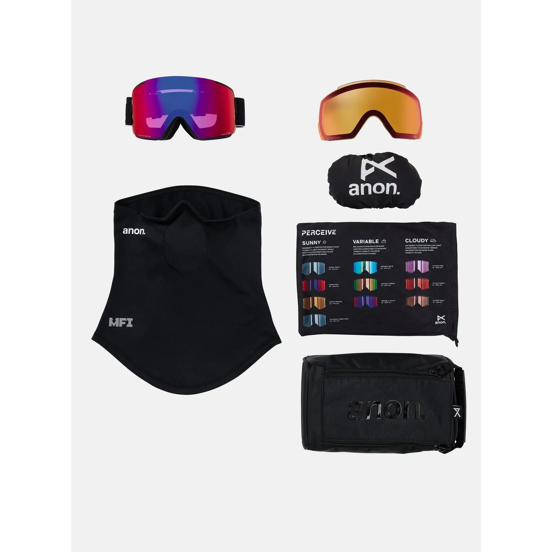 The Anon M5 Goggles deliver oversized vision and flagship optics in a low-profile, frameless design that sits flush with your helmet. Flat toric lenses blend cylindrical and toric benefits for maximum peripheral view and sharp contrast through variable light, while PERCEIVE tech makes terrain pop in flat or stormy conditions. Magna-Tech magnets make lens changes glove-friendly fast, and Integral Clarity anti-fog plus full-perimeter venting handle sweat, hikes, and hot laps without blurring up. With OTG compatibility, triple-layer face foam, and seamless MFI face mask integration, this setup keeps you locked in and storm-ready from first tracks to late chairlifts.