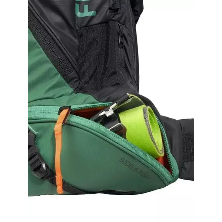 BCA’s new Float E2 avalanche airbag packs use an Alpride E2 supercapacitor system to store energy that powers the compressor upon deployment. Supercapacitor performance is more reliable in cold temperatures and releases faster when activated for deployment. The new E2 engine is 40 percent smaller and 11 percent lighter than the existing Alpride E1 system, with a 162-liter airbag. Like the E1, the E2 has no TSA restrictions for hassle-free airline travel. While the E2 system makes it easy to travel by air, our innovative Side Stash pocket and Back Stash zip make it easier to travel on snow —without stopping to hydrate, swap hat/gloves/eyewear, or even skins— just rip ‘em, stash ‘em and go!