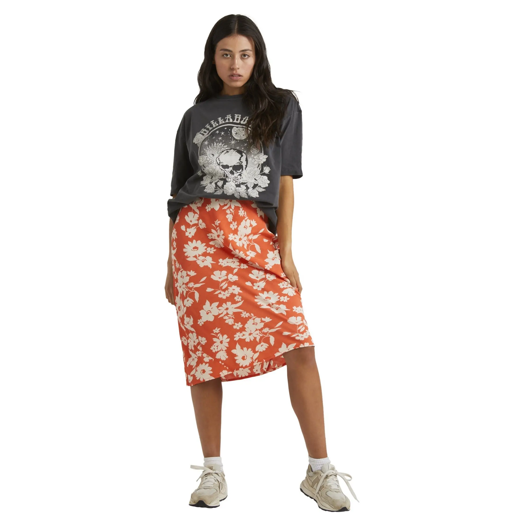 Transform your wardrobe with this bright nectarine midi skirt. The Hazy Dream Skirt's bias cut is designed to flatter your natural curves, creating a stunning silhouette that's both comfortable and chic. The elastic waistband allows you to move freely and confidently without sacrificing style. Dress this midi skirt up or down for any ocassion.