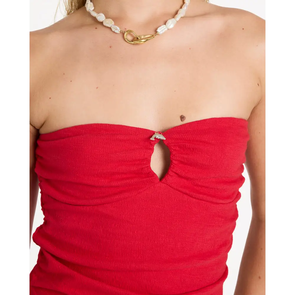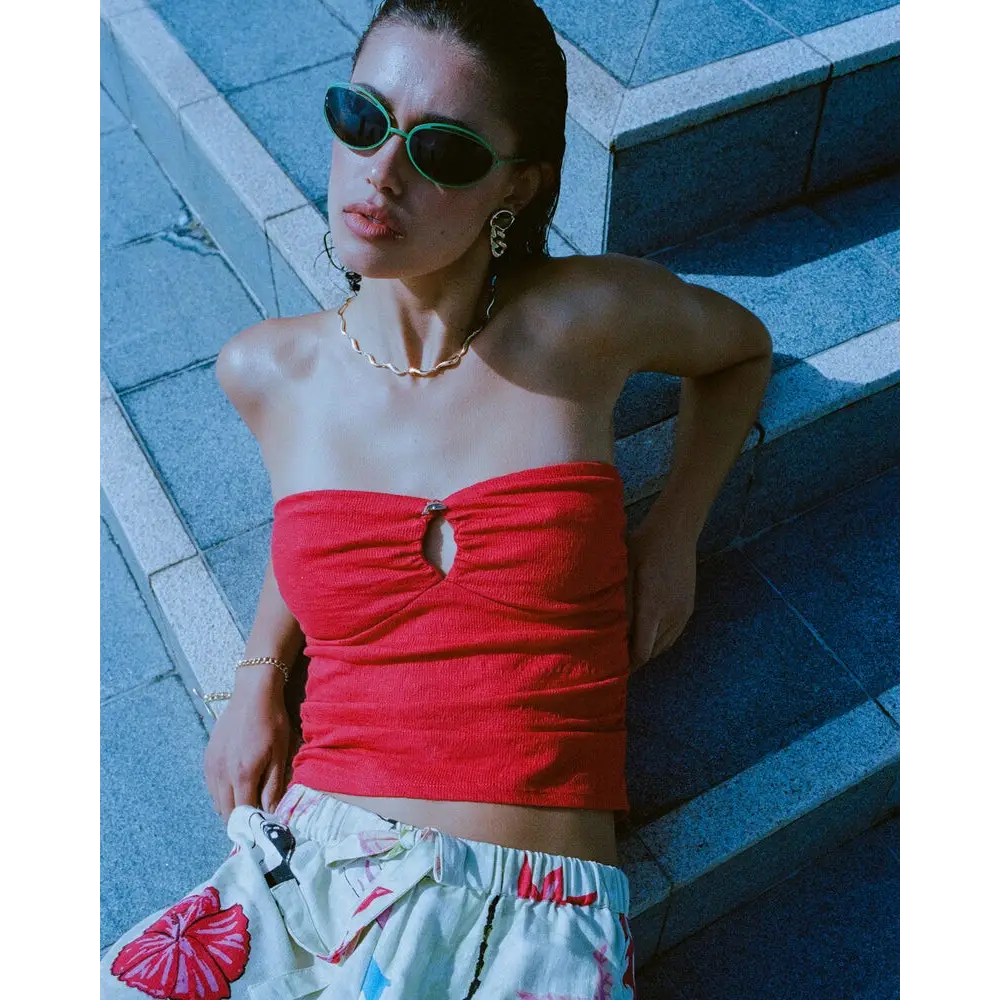 - Fitted knit tube shape – Clean, strapless silhouette that hugs the body and keeps tan lines minimal on hot days.