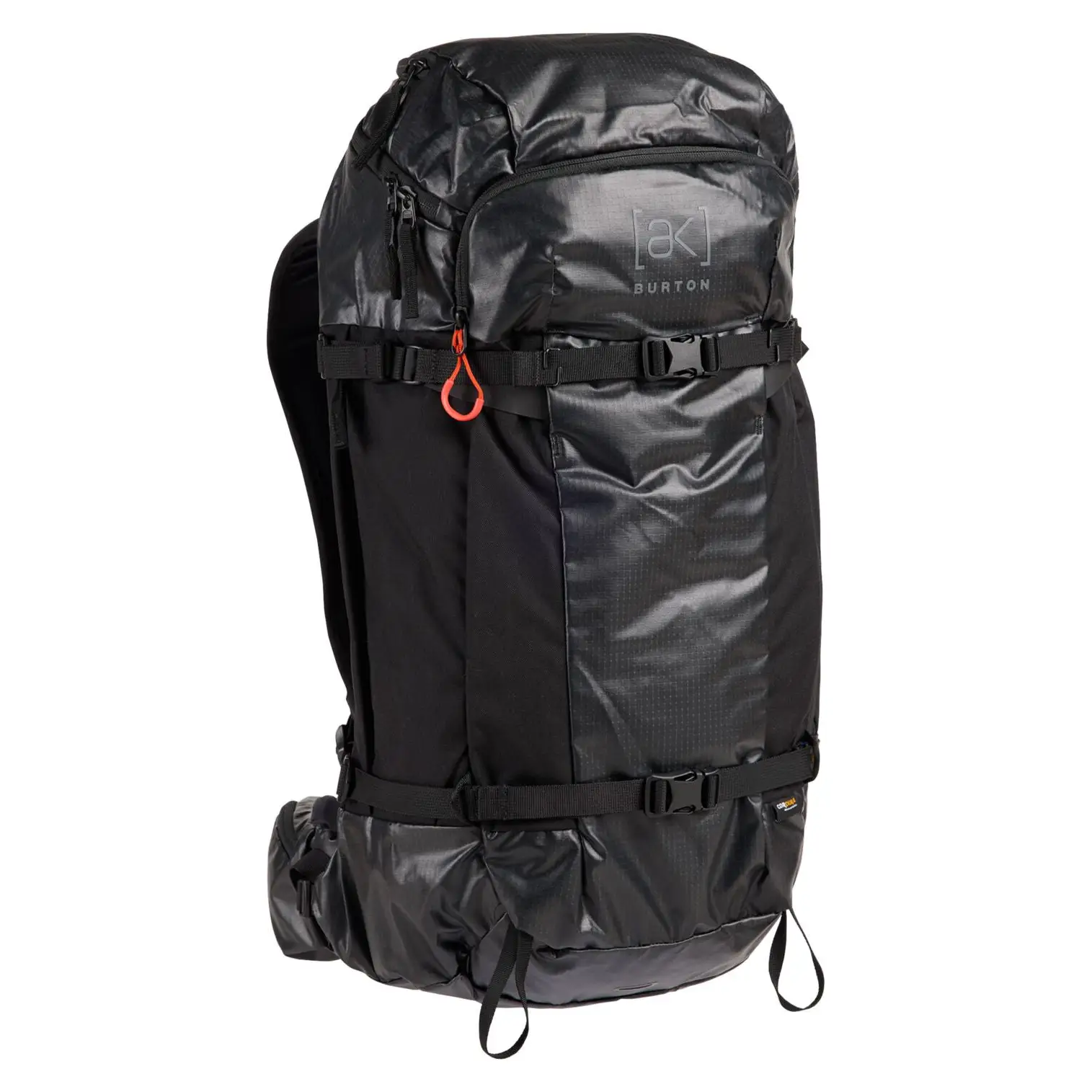 The Burton AK Dispatcher 35L Backpack hauls complete mid-winter backcountry missions with extra layers, food, and safety gear while staying balanced through skintracks and bootpacks. At 1.41kg, its 35L capacity offers full back panel and top zipper access for quick gear swaps, with dedicated avalanche tool storage keeping shovel, probe, and snow saw instantly reachable. Snow-repelling compression-moulded back panel with airflow zones sheds powder and vents effort, while articulated ergonomic straps, hipbelt pockets, and built-in whistle distribute weight comfortably for all-day ascents. A-frame splitboard carry, vertical board option, stowable helmet sling, ice axe loops, and dual water bottle pockets support extended tours. Bluesign® approved Cordura® fabrics deliver durable, eco-conscious performance.