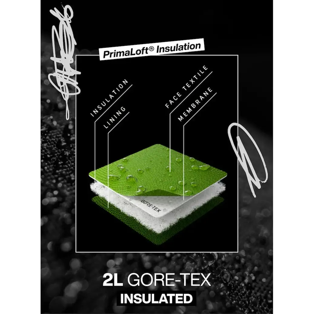 | Waterproofing | GORE-TEX 2-layer recycled nylon 70D plain weave blocked with 2-layer recycled polyester 75D for guaranteed waterproof, windproof, and breathable performance |