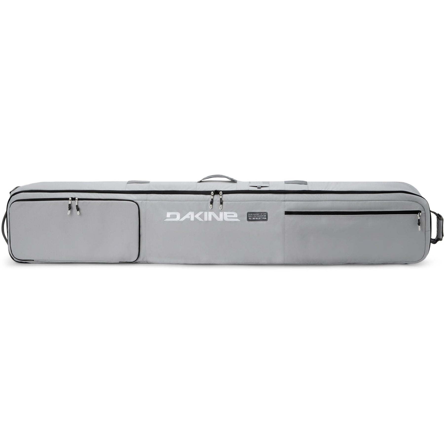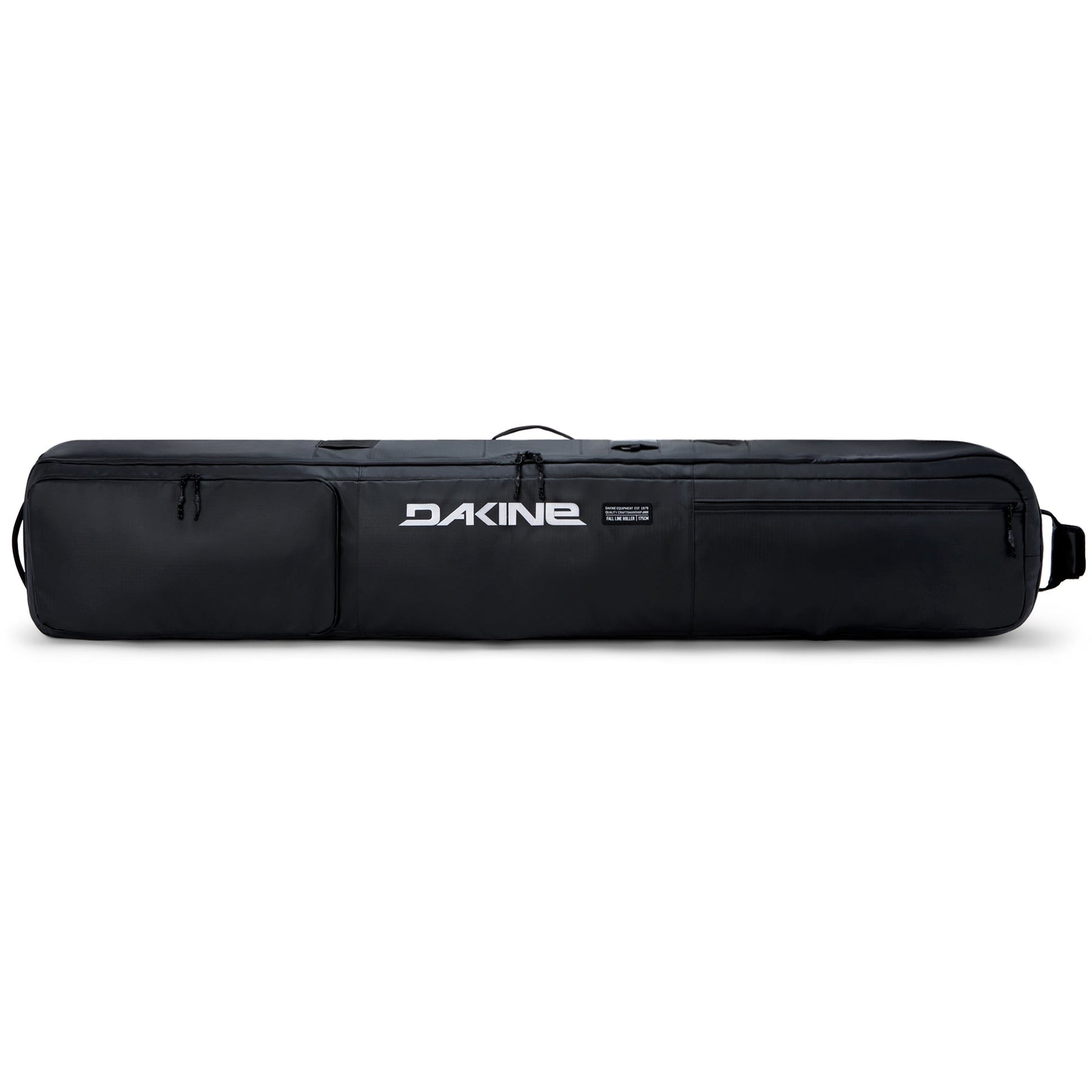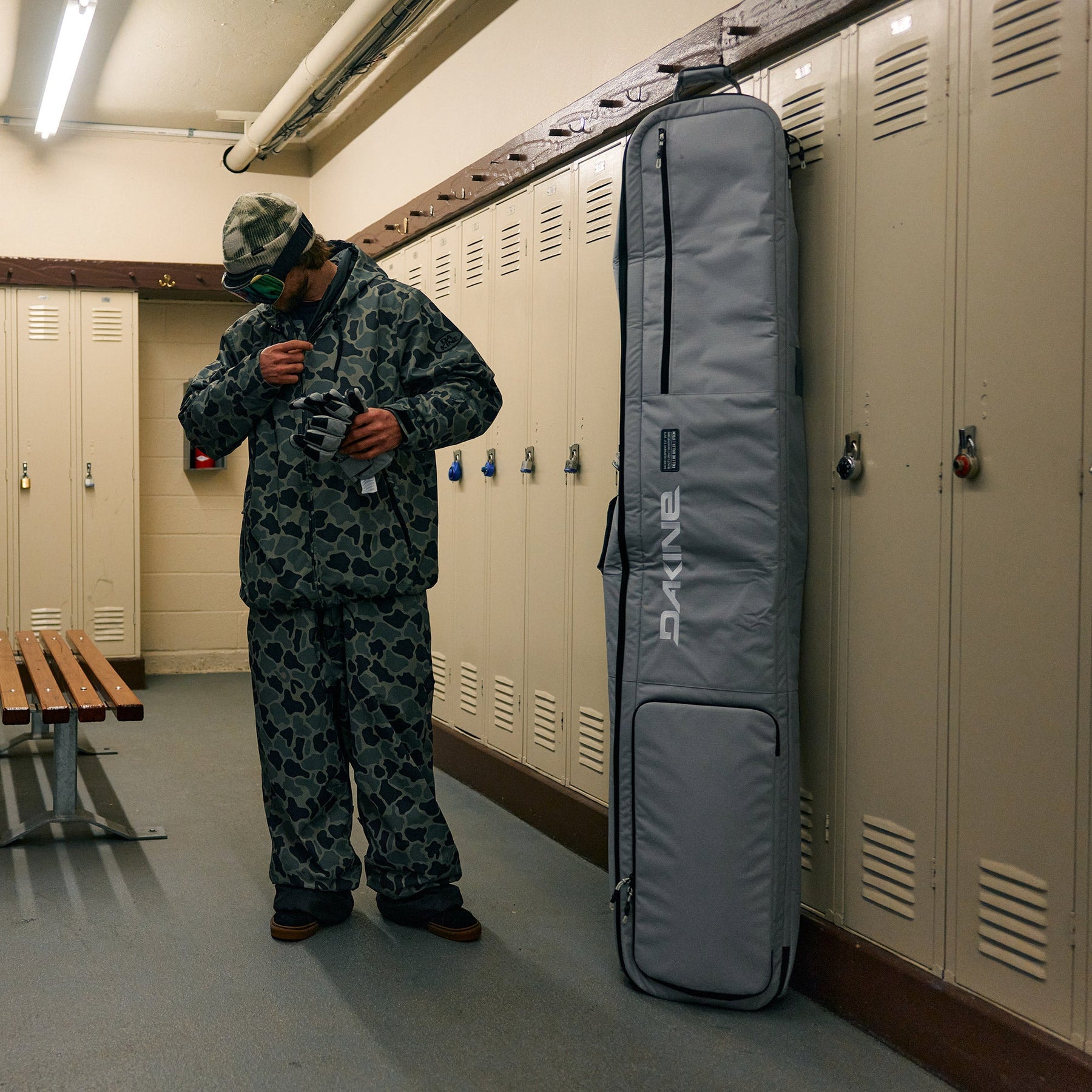 The DaKine Fall Line Ski Roller Bag accommodates two pairs of skis up to 175cm or 190cm, one pair of boots, poles, and outerwear, keeping everything organised and protected during transit. Constructed from 100% recycled polyester with polyethylene lining, it features 360° padded and tarp-lined ski protection plus interior webbing anchor straps to prevent shifting. Durable oversized 9cm urethane wheels and an end handle enable one-handed manoeuvring alongside rolling luggage, while it packs down compactly for storage.