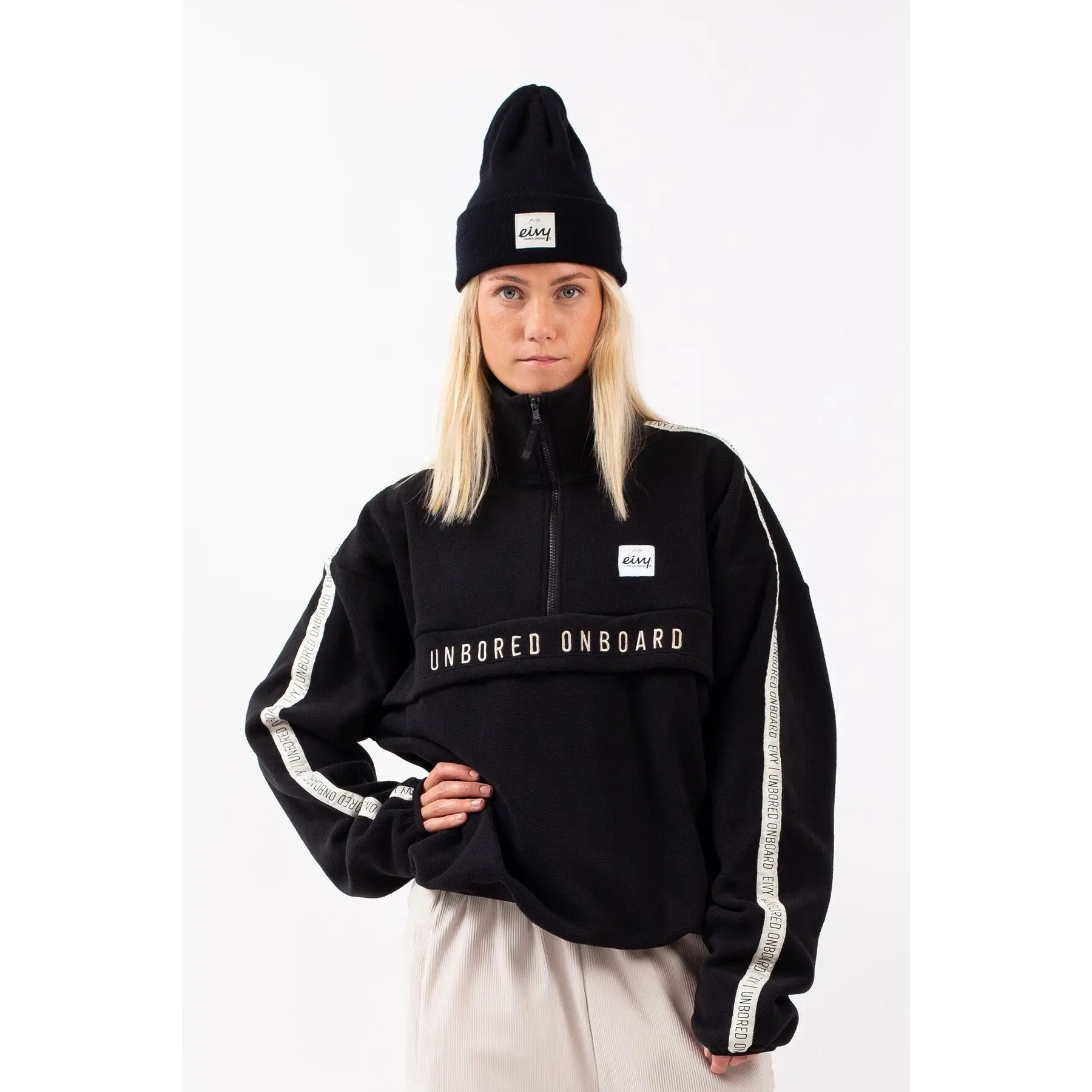 The Eivy Ball Fleece delivers a soft, insulating layer with a slightly oversized fit that’s ideal for throwing on over base layers or street gear. Made from warm 100% recycled polyester fleece with Global Recycled Standard and Oeko-Tex certification, it balances dependable warmth with easy care and everyday durability. The high collar with a YKK® half zip lets you fine-tune airflow on the hill or around town, while a spacious zippered front pocket keeps your essentials secure and your hands sheltered. Integrated thumbloops help keep your sleeves in place under a shell and add a touch of extra warmth when the temperature drops, making this a multi-use piece for snow days, road trips, and everything in between.