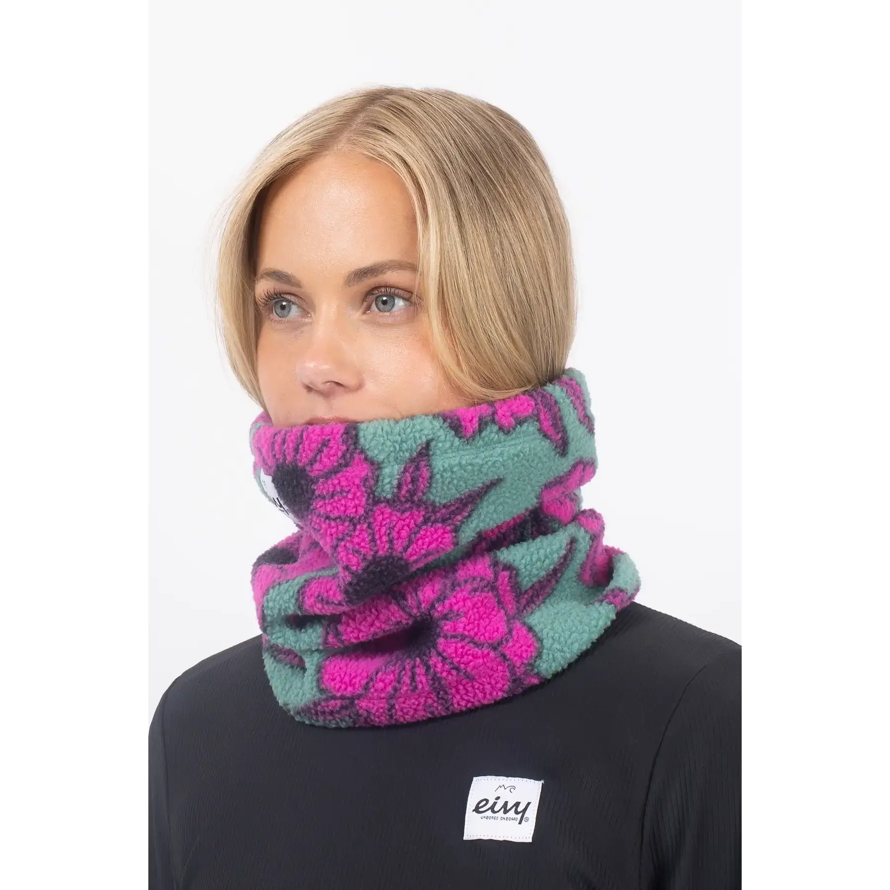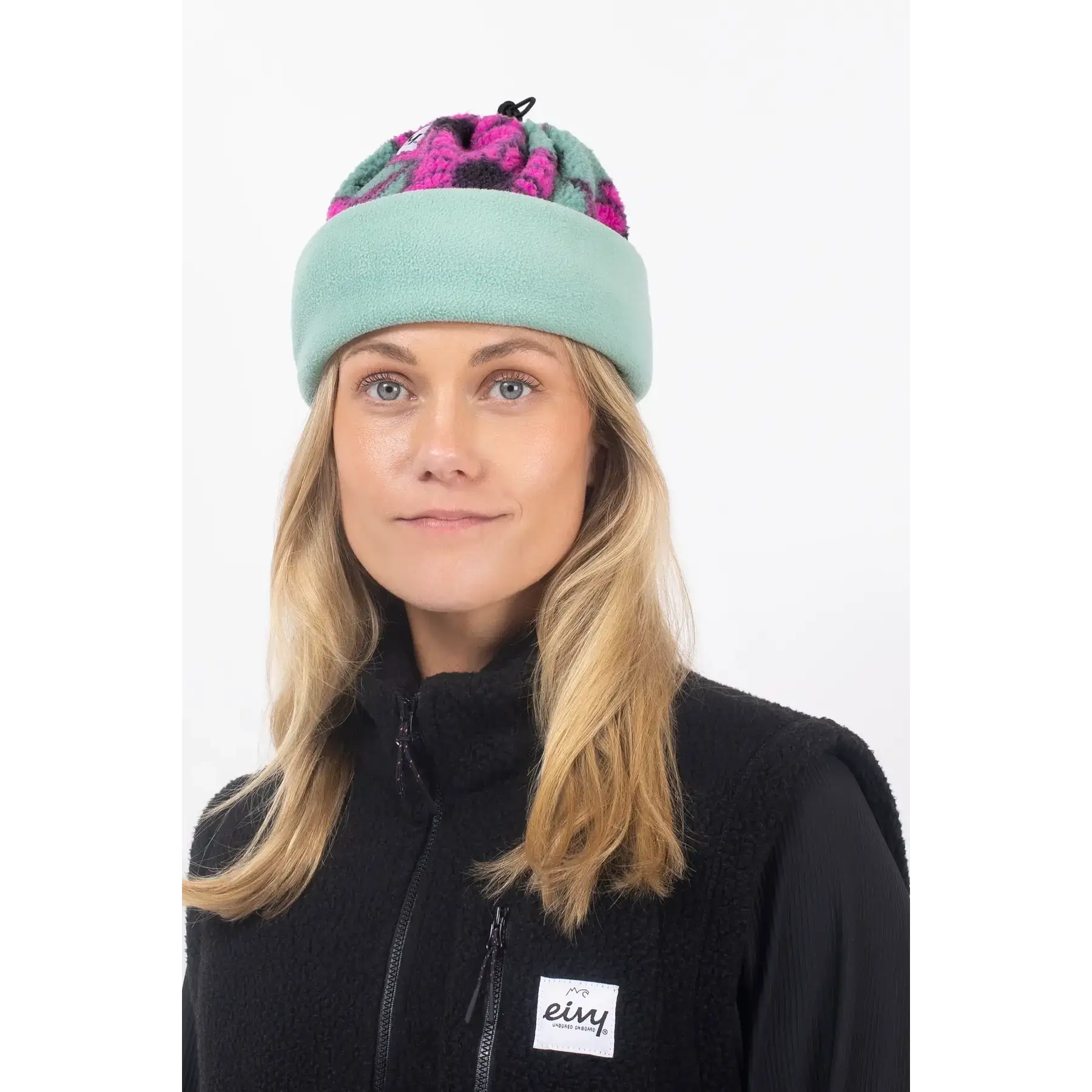 The Eivy Beanie Sherpa Neckwarmer delivers extra insulation with thick sherpa fleece from GRS-certified 100% recycled polyester. Elastic drawstring adjusts for secure fit as neck gaiter or quick-pull beanie under helmets. Moisture-wicking and quick-drying properties maintain comfort across resort laps and urban outings.