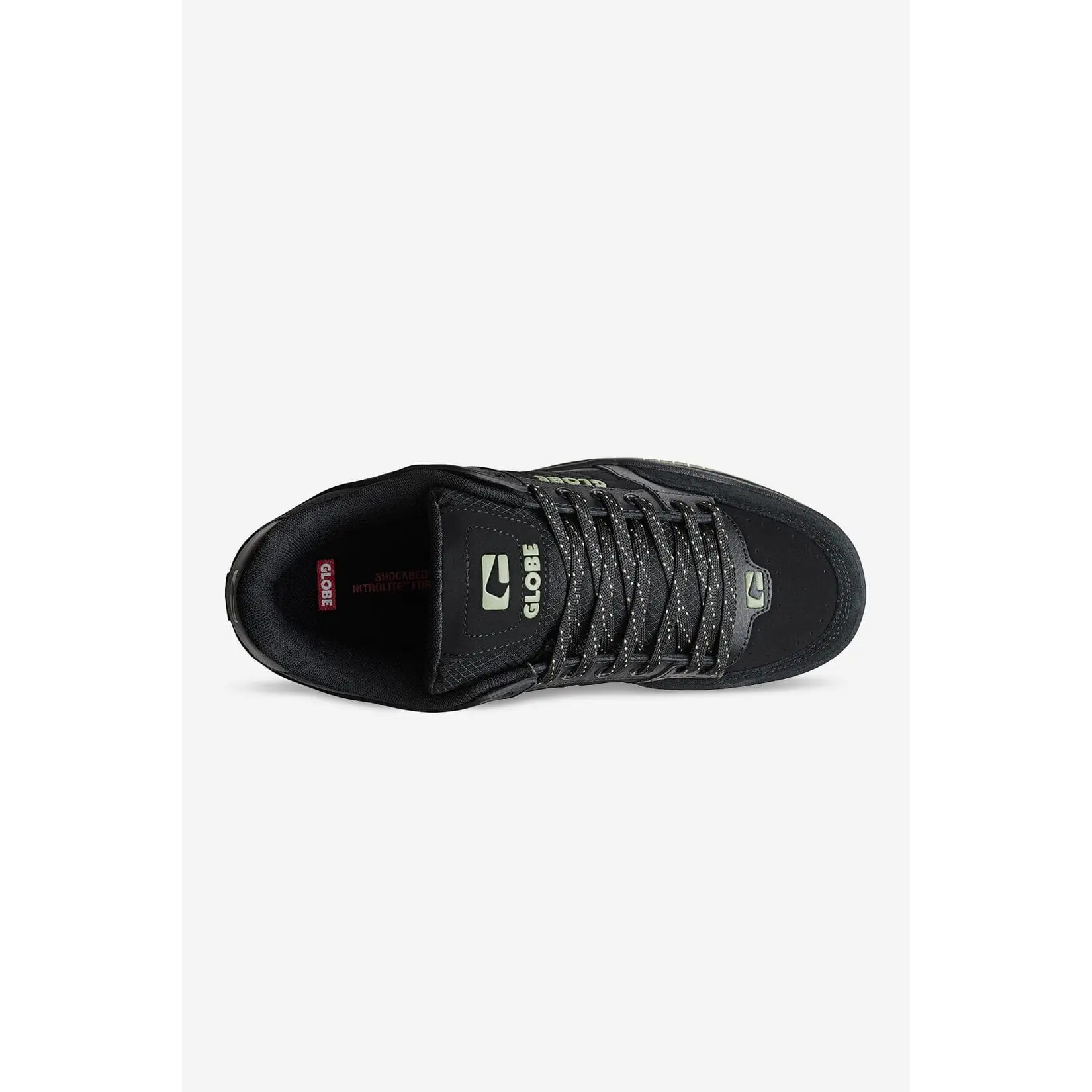 The Tilt in Black/Olive is Globe's classic heritage skate silhouette featuring a moulded TPR outside collar for support and durability, and S-Trac™ sole pattern for enhanced grip and board feel.