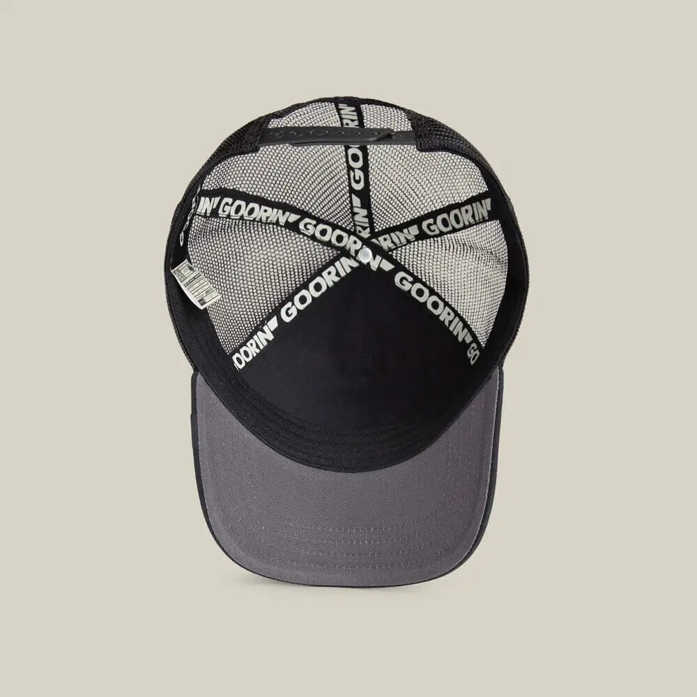 The Goorin Bros The Cancelled Skull Cap is a standout black trucker hat from the Animal Farm collection, delivering edgy streetwear vibe with crisp detailing. Featuring a solid black front panel and breathable mesh back, it showcases a beige and brown embroidered skull patch that commands attention. Made from a durable 57% polyester and 43% cotton blend, the cap balances comfort with strong build quality for everyday use. The 2.5-inch curved brim is accentuated with a rope trim for classic trucker authenticity. An adjustable snapback closure fits most head sizes from 55 to 61 cm, rounding out a bold, versatile cap for fans of street style with attitude.