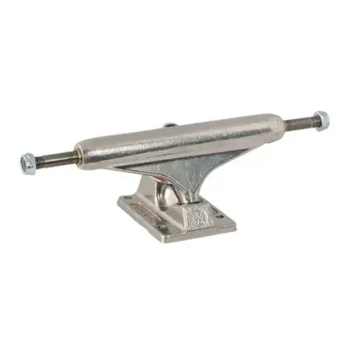 Independent Stage 11 Polished Standard Trucks offer timeless reliability with a 55mm height that balances wheel clearance for 56mm wheels and under, delivering smooth turns and locked-in stability across street and park. Crafted from A356 T6 heat-treated aluminum hanger and baseplate with chromoly steel axle, they withstand heavy impacts while keeping weight low for responsive feel. The grade 8 kingpin and 90a cushions ensure precise response without flexing out, backed by a lifetime guarantee for endless sessions.