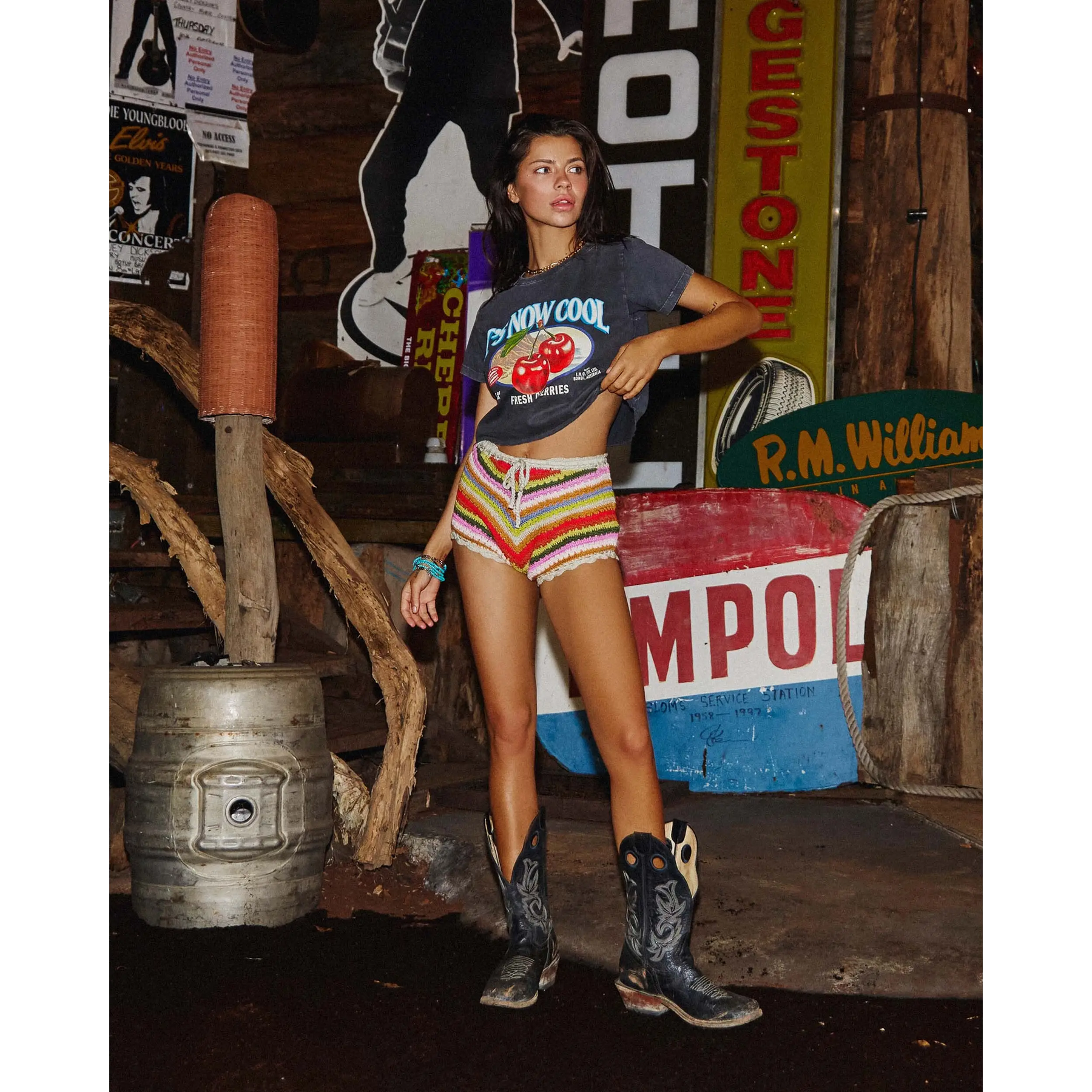 Fresh cropped style with comfy 100% cotton and a playful cherries graphic for laid-back summer vibes.