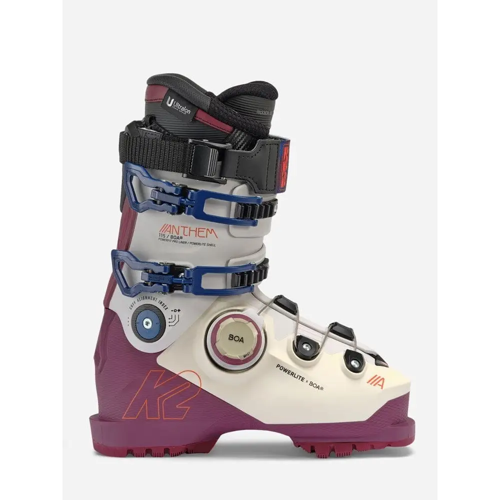 The K2 Anthem 115 BOA Ski Boots 2026 combine aggressive freeride power with lightweight comfort for women charging all-mountain terrain from groomers to powder.