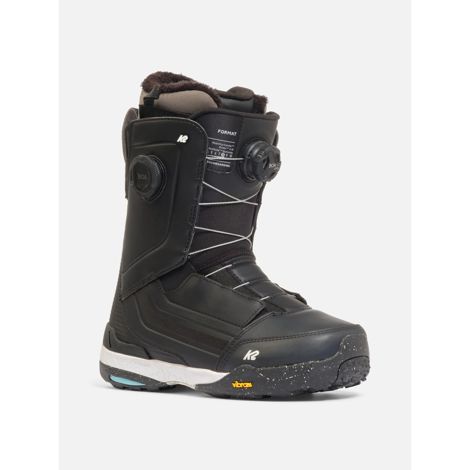 The Format is packed with tech. It starts with a foundation of a zonal closure system and articulating cuff to reduce shell distortion and provide consistent heel hold. The shell lacing features the H4/M3 Zonal BOA® Fit System with TX3 BOA® Rope Laces. The upper shell lacing powered by an H4 Coiler BOA® dial and the lower shell lacing controlled by an M3 BOA® dial, allowing the rider to independently control the upper and lower zones of the boot for the perfect fit.