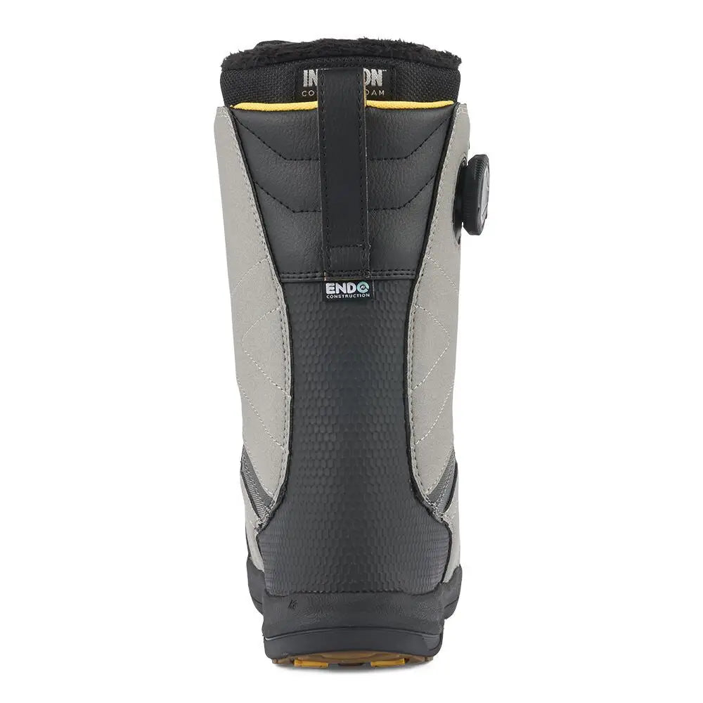 Endo™ 2.0 Heel Counter – A K2 Snowboarding exclusive, Endo™ Construction allows the flex, response, and rebound of a snowboard boot to be altered without adding extra materials (extra materials = extra weight). By replacing additional materials with an injected heel-counter, adding extra rebound is as easy as a formula change and helps to provide a more consistent flexing, longer-lasting snowboard boot.