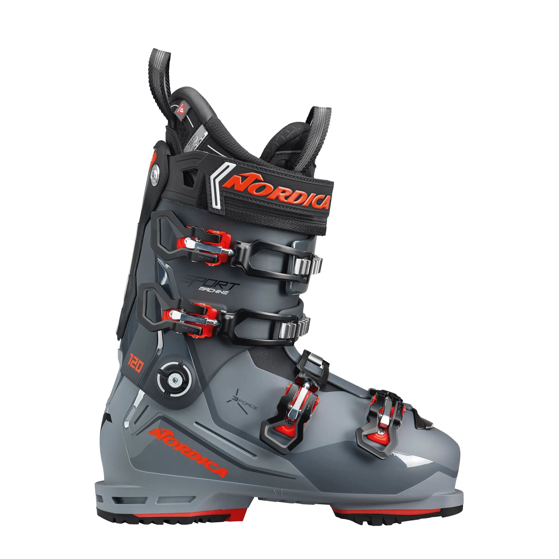 Armed with exceptional comfort and performance, Nordica’s Sportmachine 3 120 loves to tackle the entire mountain. Inspired by Nordica’s legendary Speedmachine boots, it sports a wider yet low profile 102 mm fit that can accommodate high-volume feet and features an aggressive flex just slightly more forgiving than the Sportmachine 3 130. Its 3 Force Construction is paired with a new spine and cuff design that maximizes the transmission of energy from the leg and foot to the liner and shell, boosting control and efficiency. The Adjustable Cuff Profile can also be fine-tuned to better cradle the contours of your calf. And for a fit that’s truly personal, its liner and shell can readily be customized. Confidently ski anything that comes your way with Nordica’s Sportmachine 3 120.