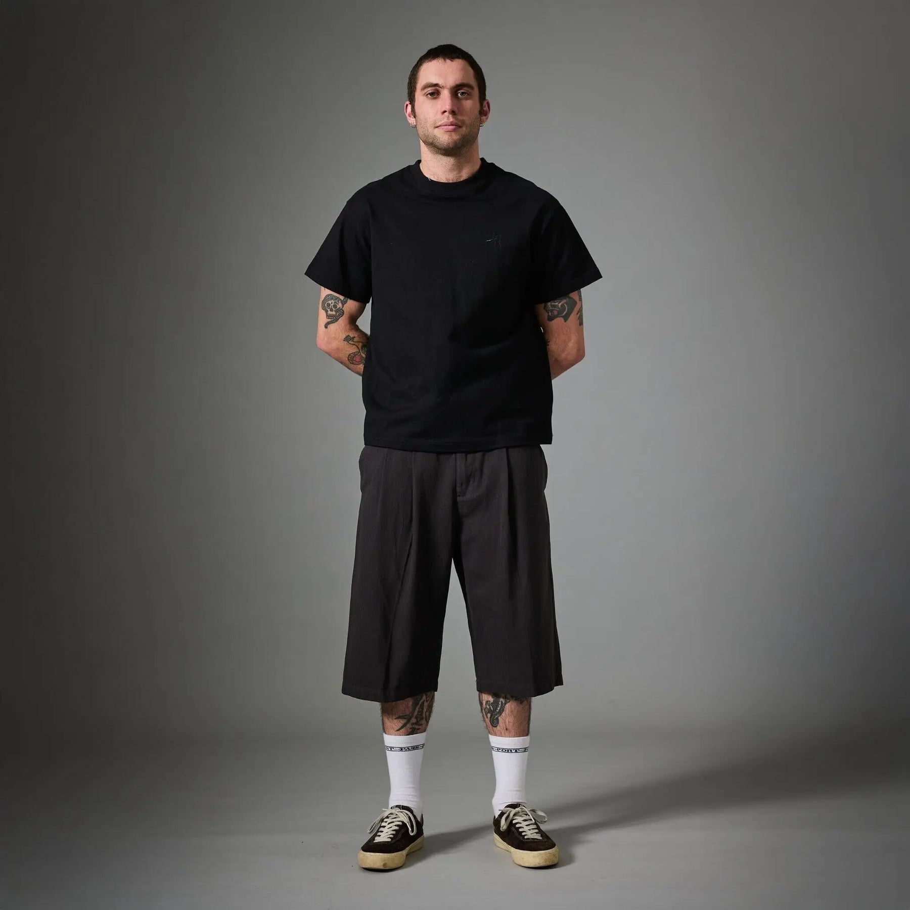 The Passport Herringbone Leagues Club Shorts deliver sharp workwear style for Wānaka's summer skate sessions, with a relaxed below-knee cut that moves freely on the board or through town. Crafted from 100% cotton herringbone twill, the structured fabric holds a clean pressed crease while developing authentic wear over time. Double pleats add volume for easy mobility, paired with subtle detailing that elevates the leagues club aesthetic without flash.