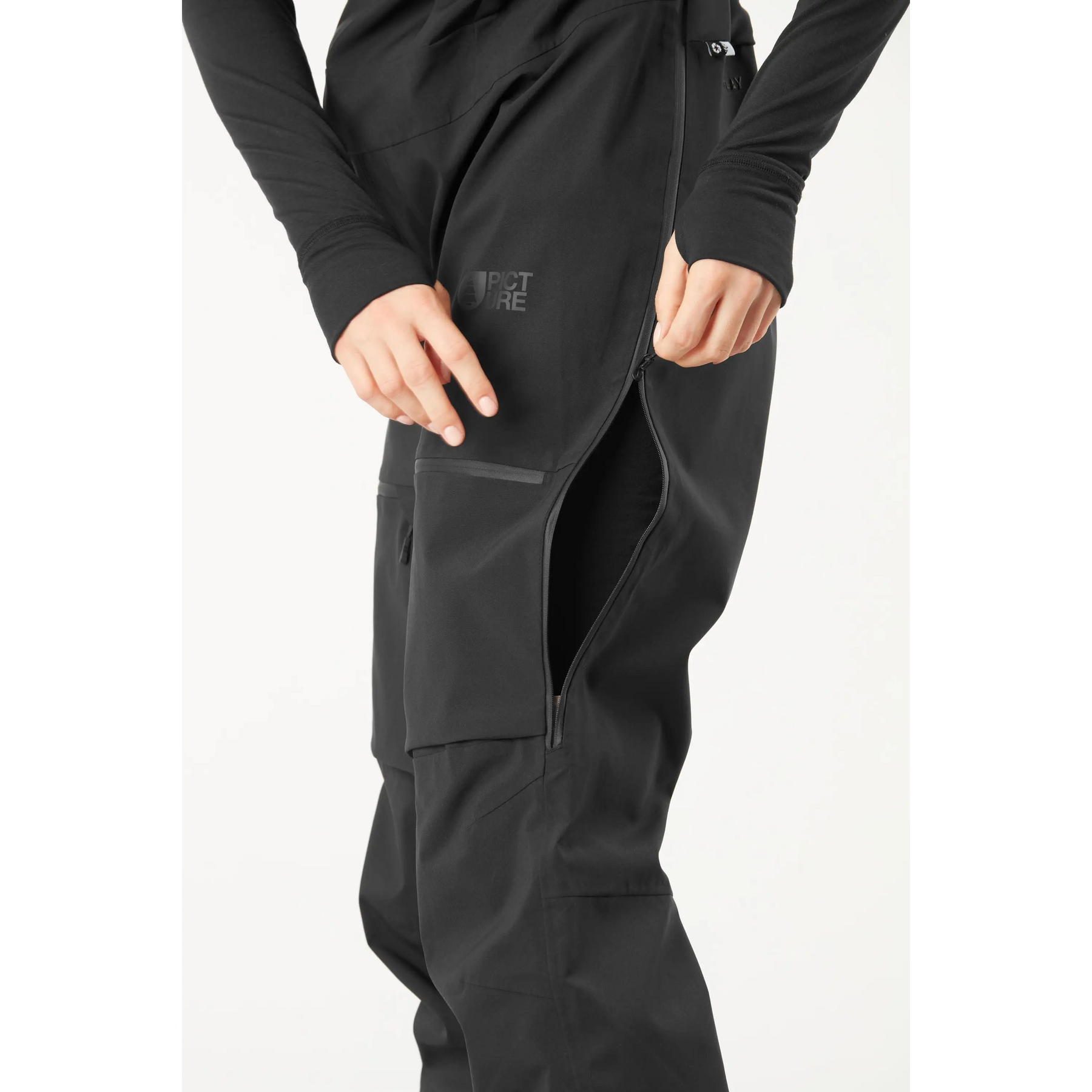 The stretch 3-layer Aeron bibs provide targeted lightweight breathability and protection for ski touring and splitboarding. Made with a sustainable bio-sourced polyester face fabric, they also feature a 20K/20K membrane for unmatched waterproof breathability, reinforced with a PFC-free durable water repellent treatment and waterproof zips. While providing maximum protection against the snow and wind, these bibs include vents for easy temperature control up any skin track or when breaking trail. The long side zipper makes these bibs easy to put on, and the many pockets are practical. For extra comfort, the elastic adjustable suspenders and stretchy lycra panels provide more than enough freedom of movement. Ready for all your big mountain adventures, these straight fit bibs are built for long days riding untracked powder.