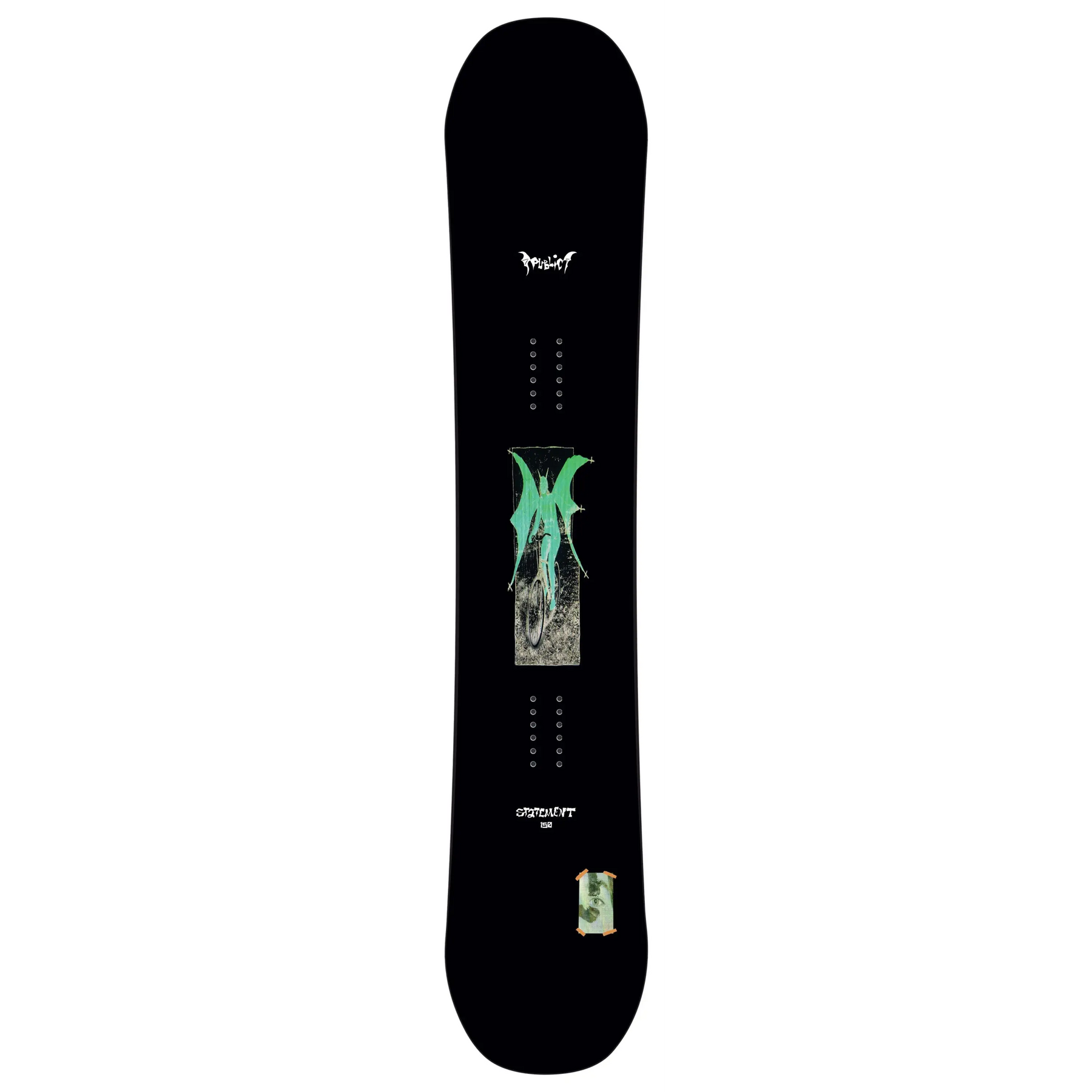 The “Statement” is Kas Lemmens' pro model. It is a mid-wide, positive cambered board that flattens out at the contact points allowing the board to get from edge to edge quickly despite its slightly wider waist width. This mid-wide shape alleviates toe & heel drag and offers more stability for high-impact riders looking for bigger terrain.