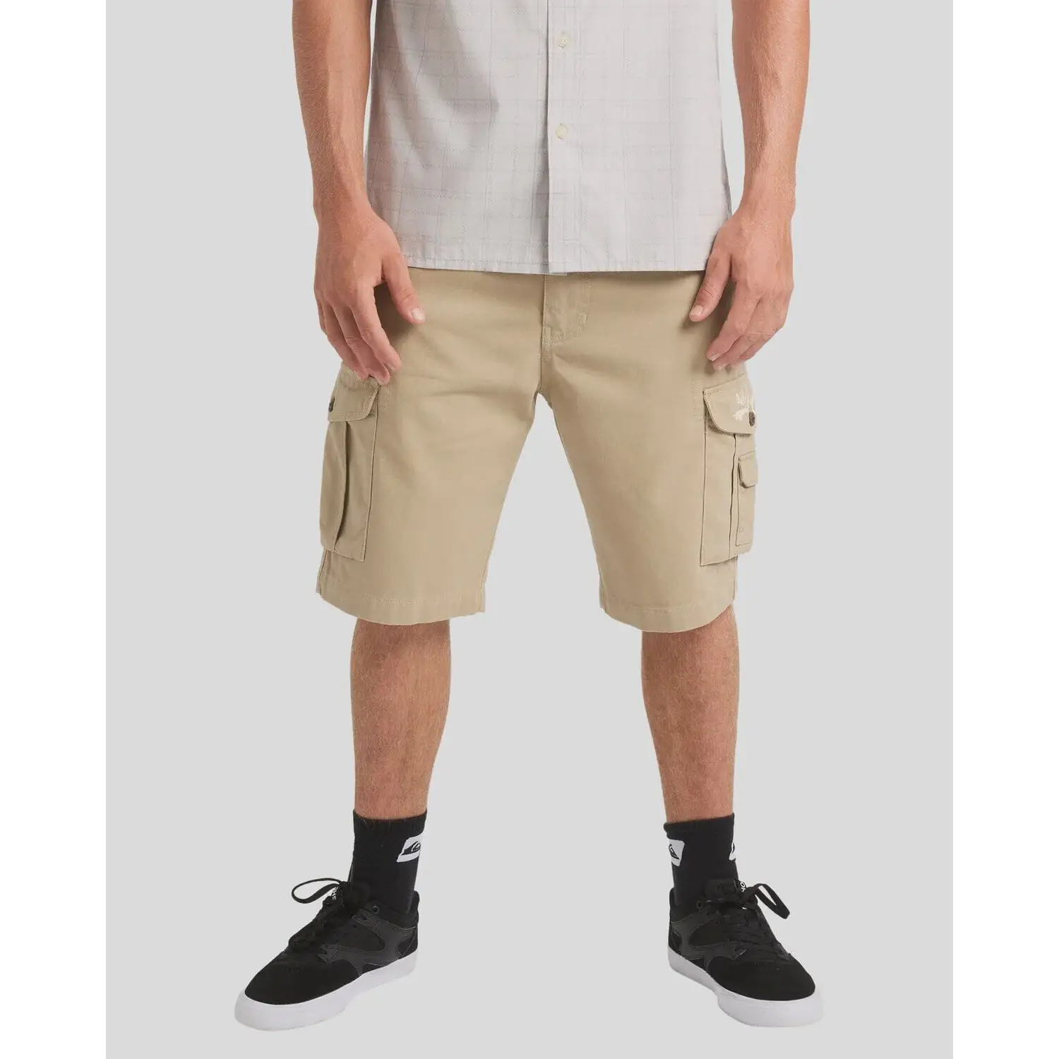 The Quiksilver Crucial Battle Walk Shorts are crafted from cotton peached twill fabric weighing 248 g/m², offering durability with a soft finish. These stretch-free shorts boast a straight tapered fit and a fixed waistband with a zip and button closure for a secure and comfortable wear. Featuring a 21-inch outseam, they hit just above the knee and include practical front slash pockets and back welt pockets with flaps for storage on the go. Ready for active days in town or chilled weekends, these shorts blend utility and classic style effortlessly.