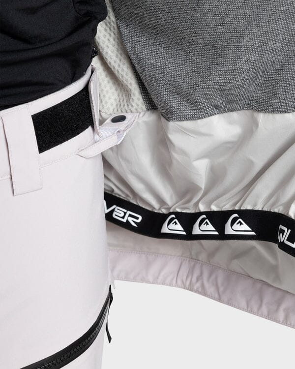 The Quiksilver Muldrow 20K Jacket delivers extreme 20K DryFlight waterproofing through recycled polyester Re-Made shell fabric with DWR treatment and reinforced critical seams. WarmFlight x2 Eco insulation at 40g body, sleeves, and hood provides lightweight warmth without bulk, paired with lightweight zoned taffeta lining for breathability. The modern fit offers tailored coverage and mobility across groomers, park, or powder days, sealed by integrated snow skirt.