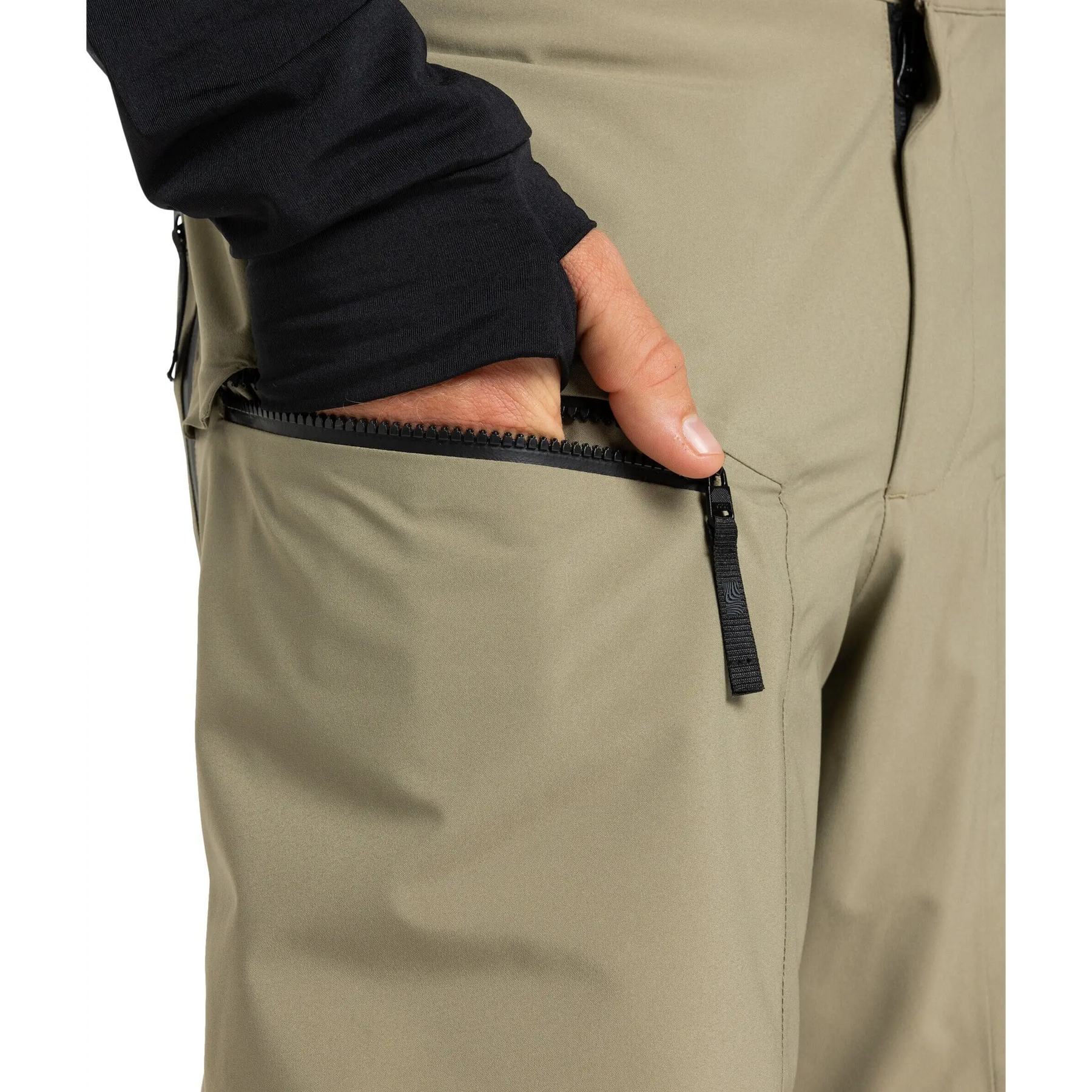 The Quiksilver Paramo Stretch 20K Pants feature DryFlight® 20K recycled polyester stretch shell for reliable storm protection. WarmFlight® x1 insulation provides breathable warmth while critical seam taping locks out moisture during intense sessions. Regular fit with stretch fabric ensures unrestricted movement for deep powder or resort progression, complete with adjustable braces for secure all-day positioning.