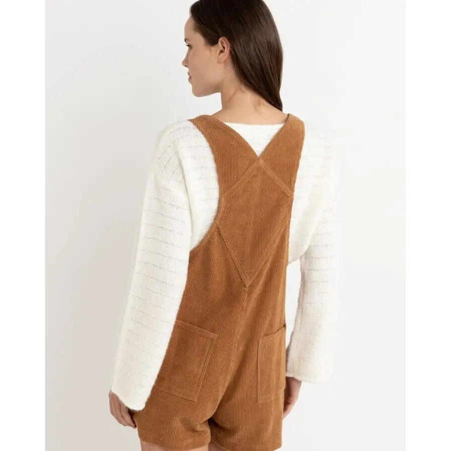 Crafted for effortless wear, the Cord Tide Short Overall in Brown offers a relaxed, easy fit with side entry and back patch pockets. The loose-fitting leg creates an A-line silhouette, perfect for casual layering.
