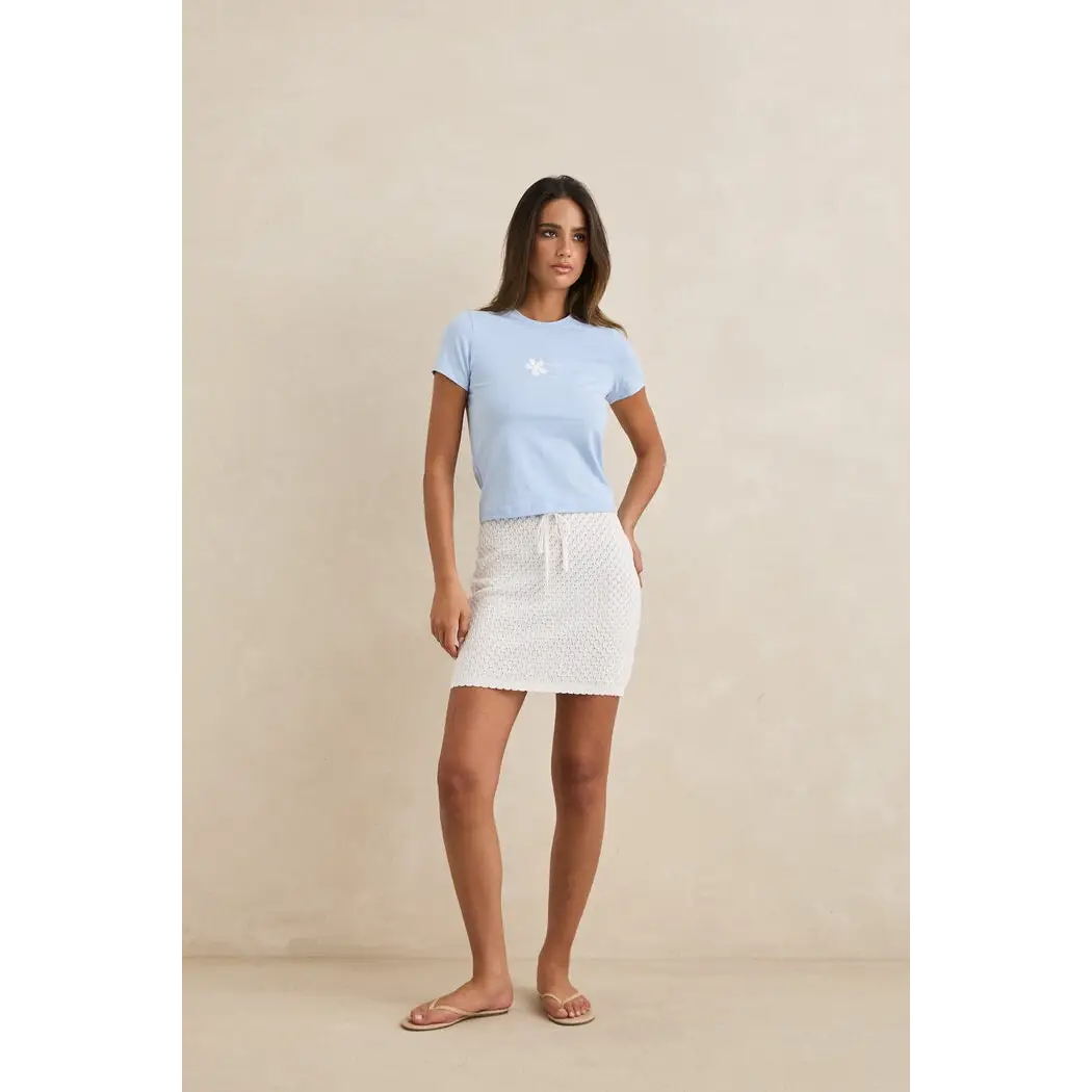 The Rhythm Holiday Everyday Tee in Sky delivers coastal cool with its slim fit and elongated baby tee cut that sits just right. Soft stretchy cotton blend moves with you from beach hangs to skate sessions, while the centre chest Holiday print using soft plastisol adds subtle Rhythm vibe without overwhelming the clean lines. Breathable fabric wicks moisture to keep you fresh through long hot days, and the lightweight construction layers perfectly under open shirts or stands alone. Built for everyday wear that gets better with time, this tee embodies effortless livin'.