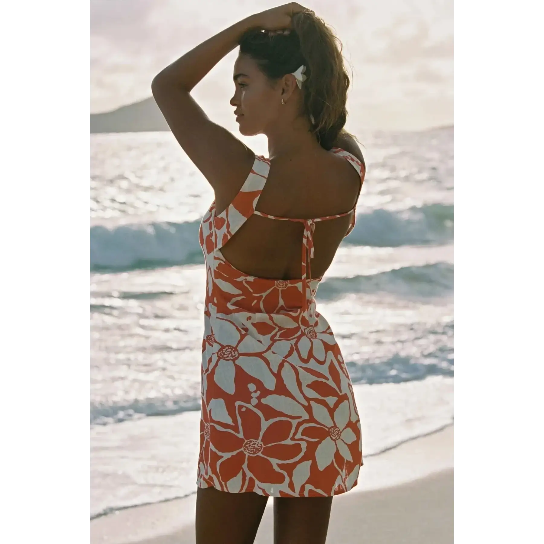 The Rhythm Poppy Tie Back Mini Dress is a playful and feminine piece designed for carefree summer days and stylish outings.