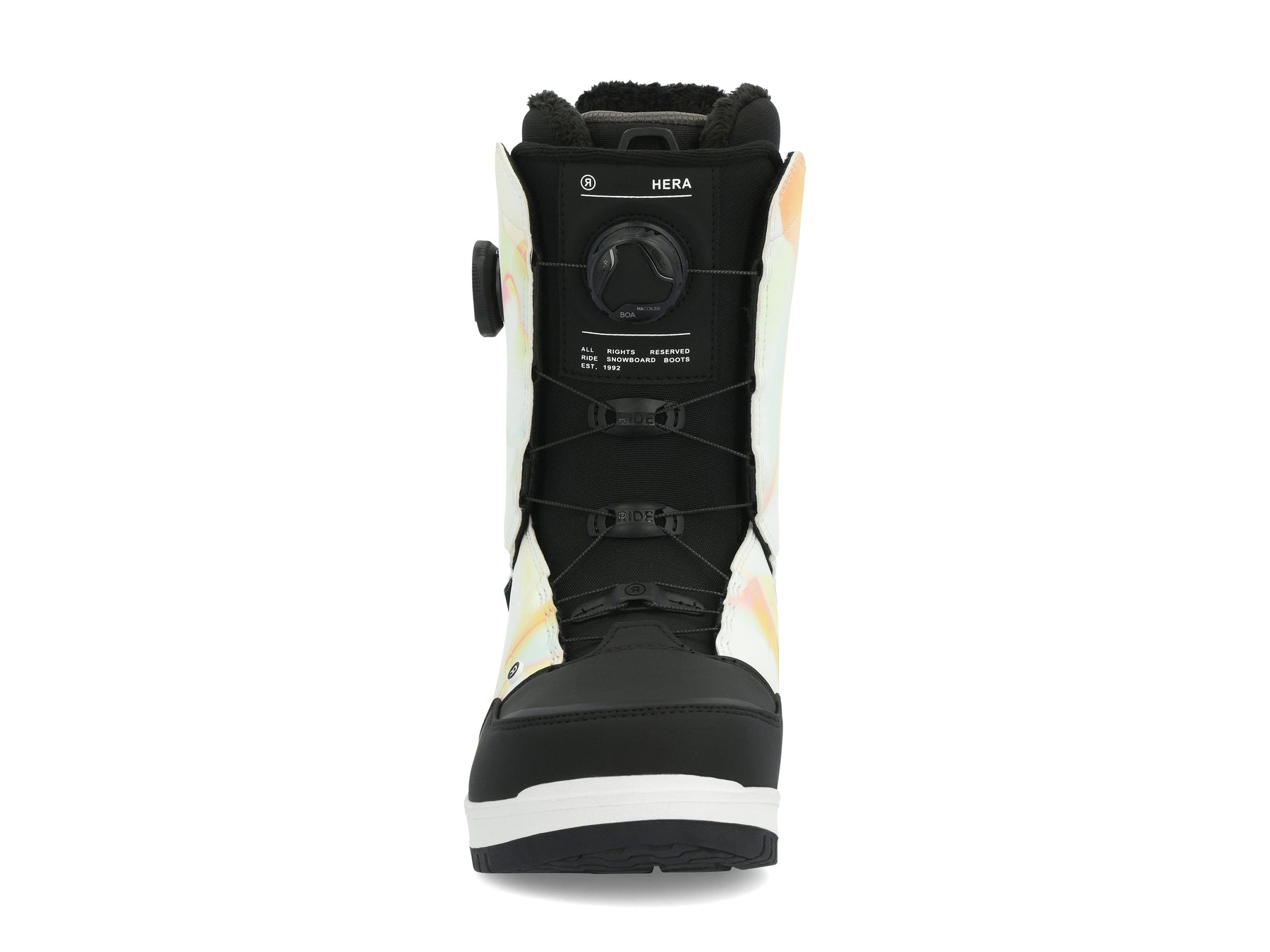 The Hera blends performance, comfort, and durability. At home anywhere on the mountain, you won't be disappointed in the Hera. Fitted with our Intuition™ Support Foam Liner and the H4 BOA® Coiler Fit System, it provides a uniform fit while the BOA® Tongue Tied™ Fit System delivers a secure fit in the ankle and eliminates the need for a traditional harness. C.A.T. technology allows for a custom fit in the calf zone for increased comfort while durable rubber Jade Plus Sole with +Slime Heel Pod provides cushioning and traction in all terrain. The Hera is a medium-flexing boot designed for all-mountain performance.