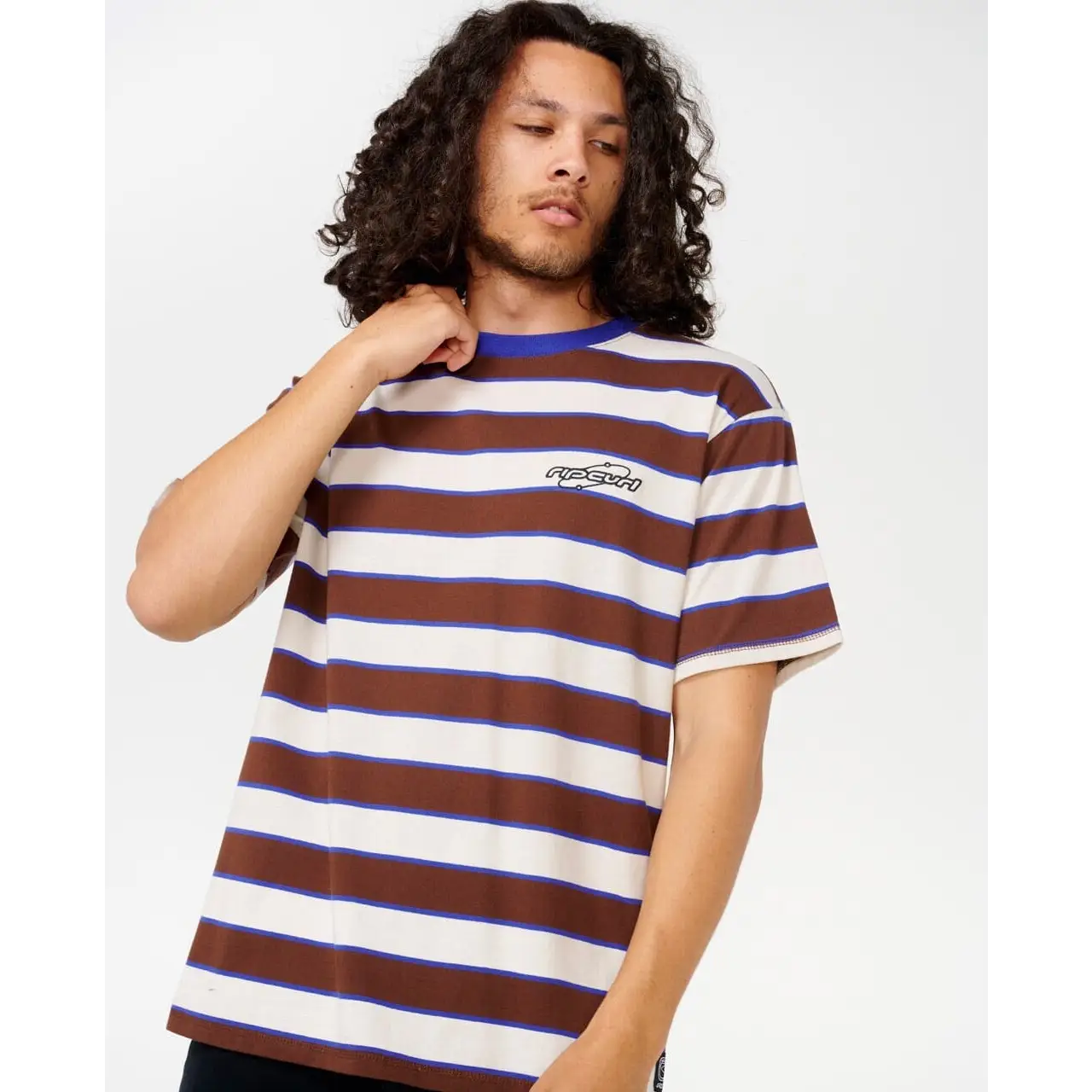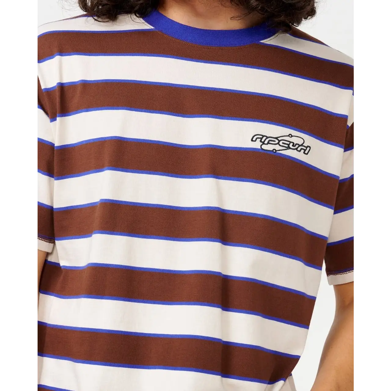 The Archive Supercomp Stripe Tee is made from 100% cotton, featuring engineered yarn dye stripes, chest embroidery, a woven label, and responsibly sourced materials.