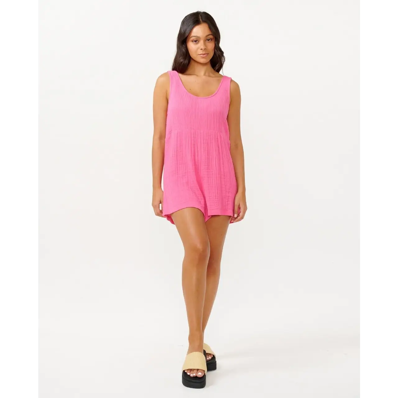 Experience comfort and style with the Premium Surf Romper. Made from cotton double weave gauze fabric, this relaxed fit romper offers a lightweight and breathable feel. Whether you're lounging at home or heading to the beach, this romper is a versatile and fashionable choice for any occasion.