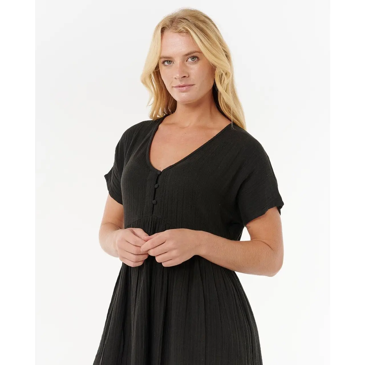 The Rip Curl Premium Surf Short Sleeve Dress is a lightweight, breathable summer dress designed for relaxed beach days and warm weather comfort.