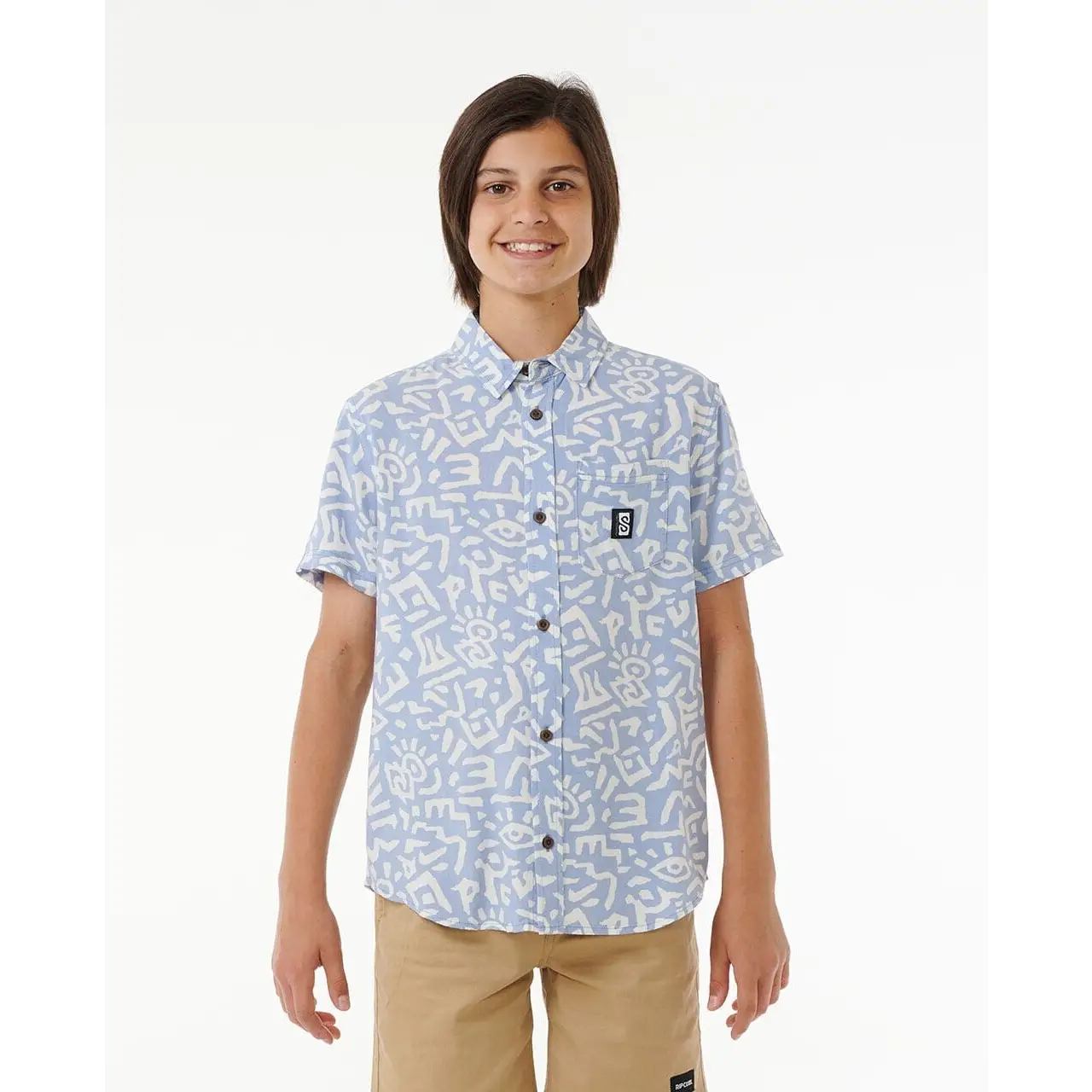 Fuel your kids' sense of adventure with our Search Short Sleeve Shirt for boys aged 8-16. Featuring an easy-to-match light blue hue and an all-over yardage print, this shirt is perfect for those who crave excitement and style in their gear.