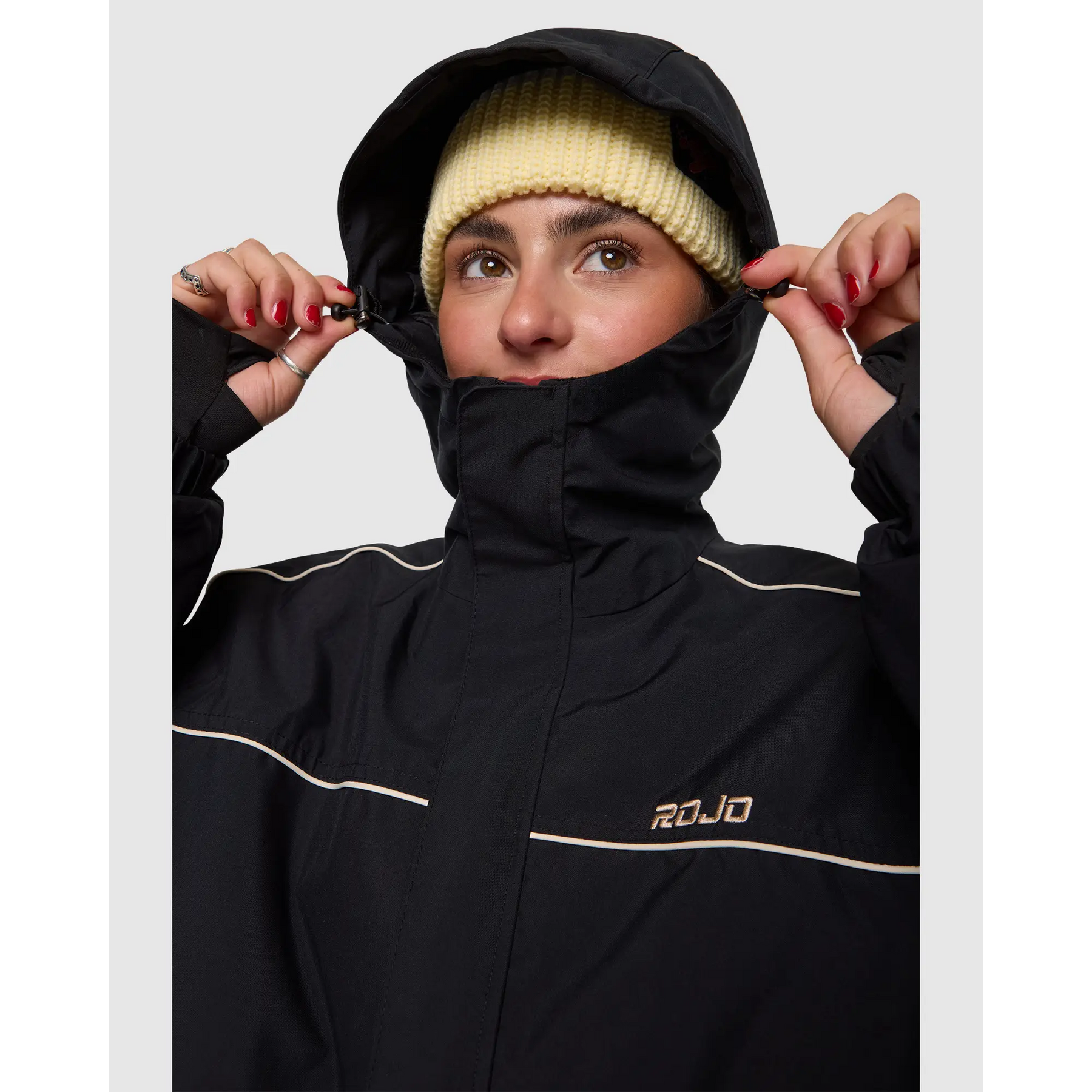 The Rojo Nine Oh Jacket combines retro streetwear looks with technical snow performance for all-day mountain use. Constructed from 100% recycled polyester plain dye fabric with OWR PFC-free treatment, it features a 20K/15K waterproof breathable rating and 40gsm 100% recycled insulation throughout. The regular fit allows easy layering while key details like media pockets and powder skirt keep you organised and dry from first chair to après.