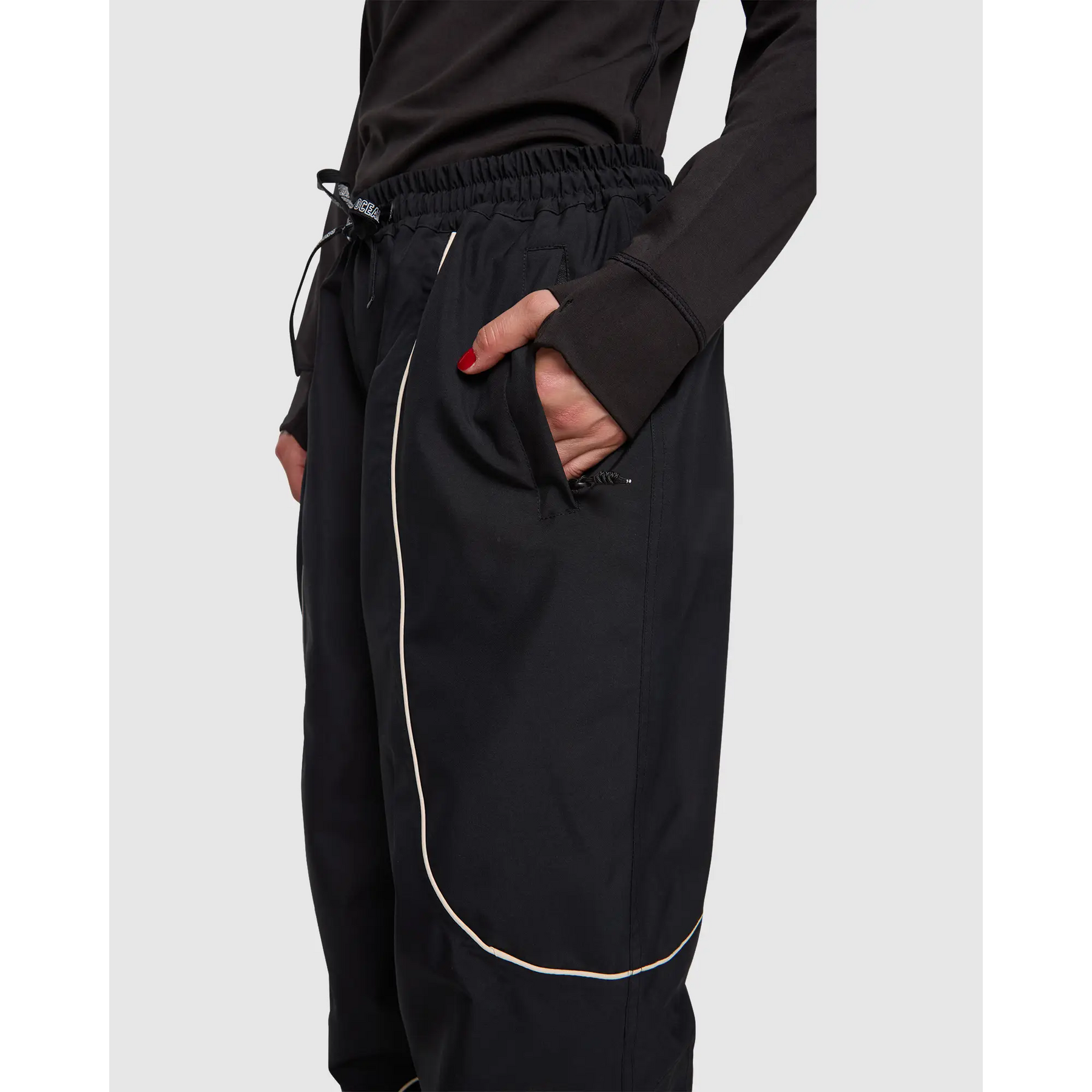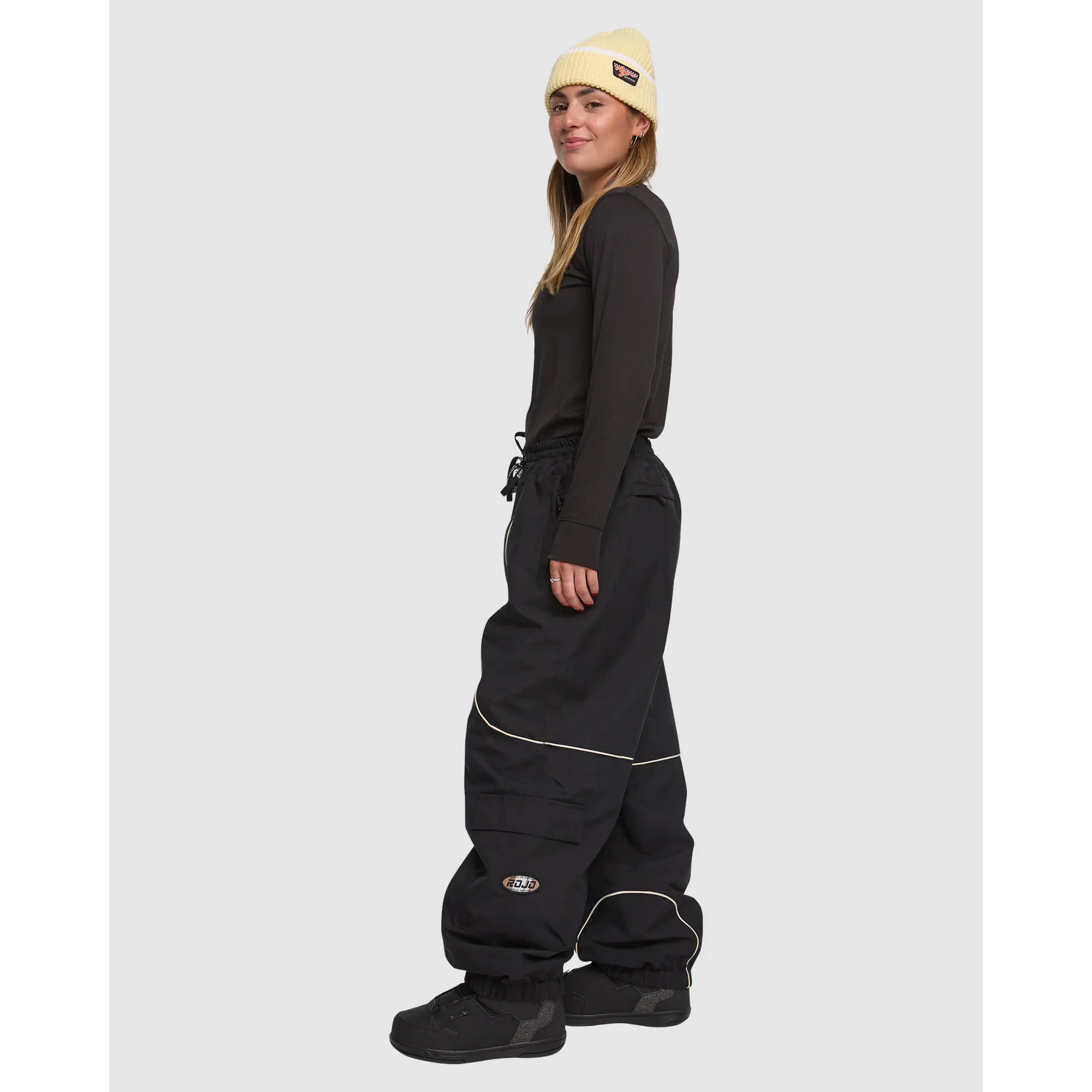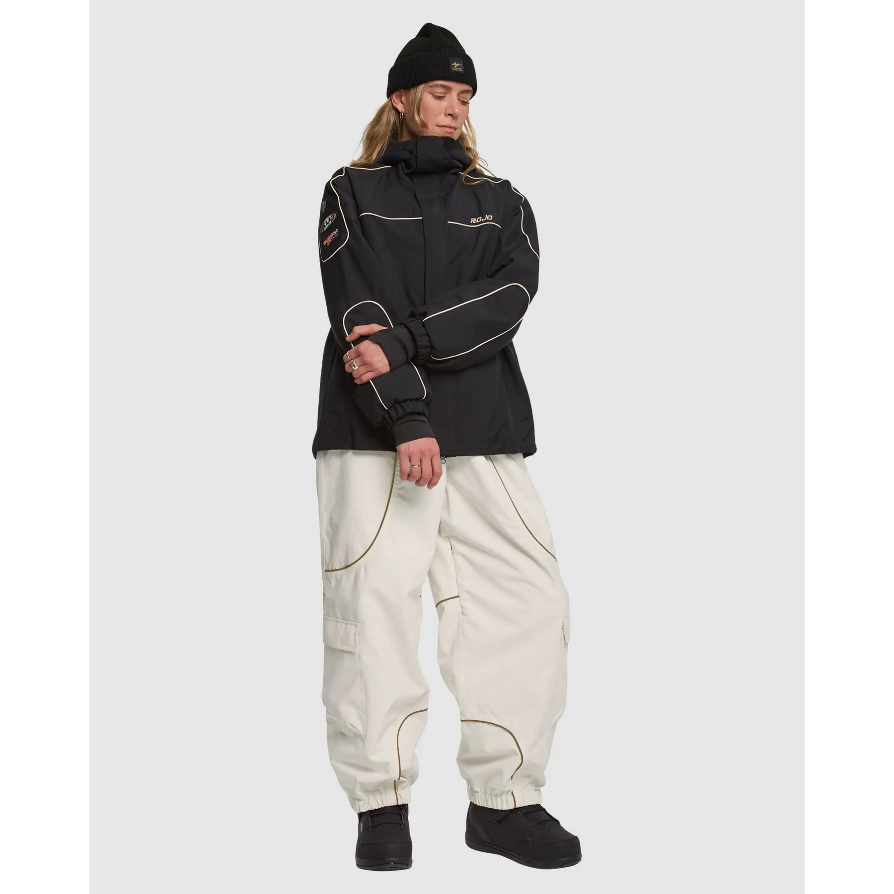 The Rojo Nine Oh Pants deliver reliable weather resistance through 20K/15K waterproof breathable recycled polyester fabric and seam-sealed construction. Featuring 40g recycled polyester insulation throughout, brushed tricot back waist warmer, and 210T recycled polyester lining from waist to hem. Baggy fit with adjustable drawcord waist offers roomy comfort for layering while cargo pockets and technical details handle daily resort missions from park laps to powder days.