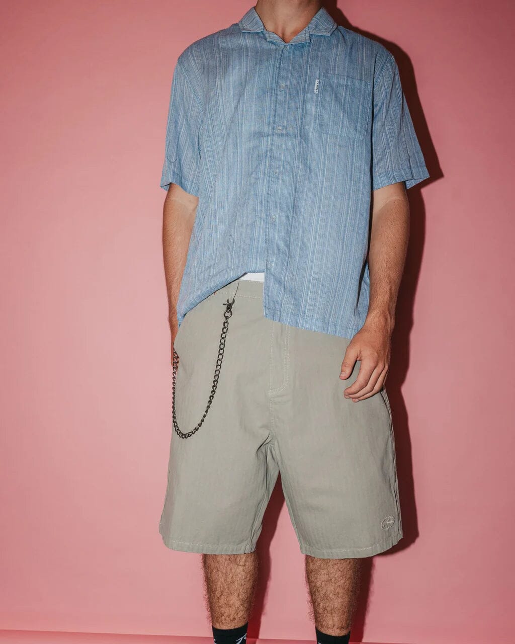 The Rusty Canseco Cuban Shirt features a regular (OG) fit crafted from 100% cotton textured stripe fabric, delivering soft comfort and breathability. It is designed with a classic Cuban collar, short sleeves, and a chest pocket, combining retro resort style with modern streetwear appeal. This shirt is ideal for warm days, bringing both effortless cool and durable quality for everyday wear or surf-side chilling.
