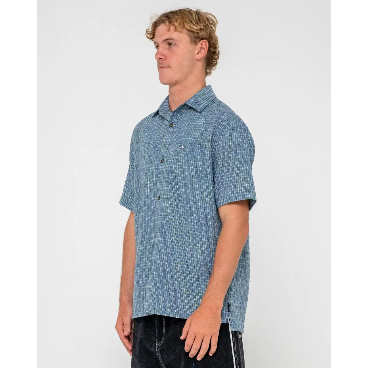 The Rusty Datsun Drop Check Shirt is made from 100% woven cotton check fabric, featuring a regular (OG) fit that balances comfort and style. Its drop hem silhouette adds a contemporary twist to this classic short sleeve button-up, while a chest pocket completes the design with functional detail. The shirt combines breathable natural fibres with enduring surf-inspired design, suitable for everyday wear or layering in transitional weather.
