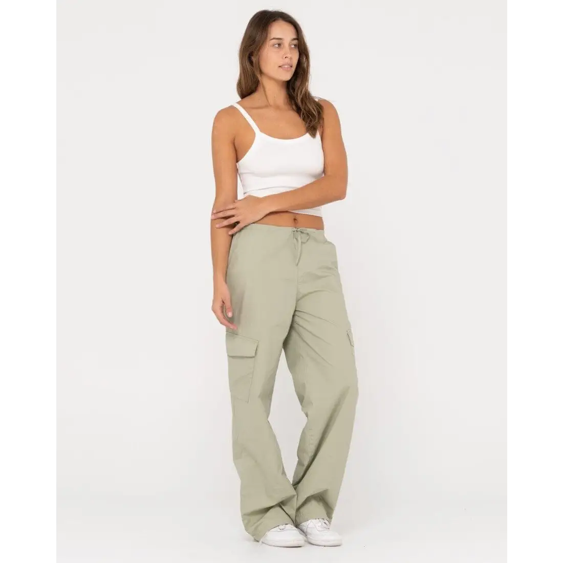 Low Rise Baggy Fit Pant With Wide Leg And Cargo Pockets.