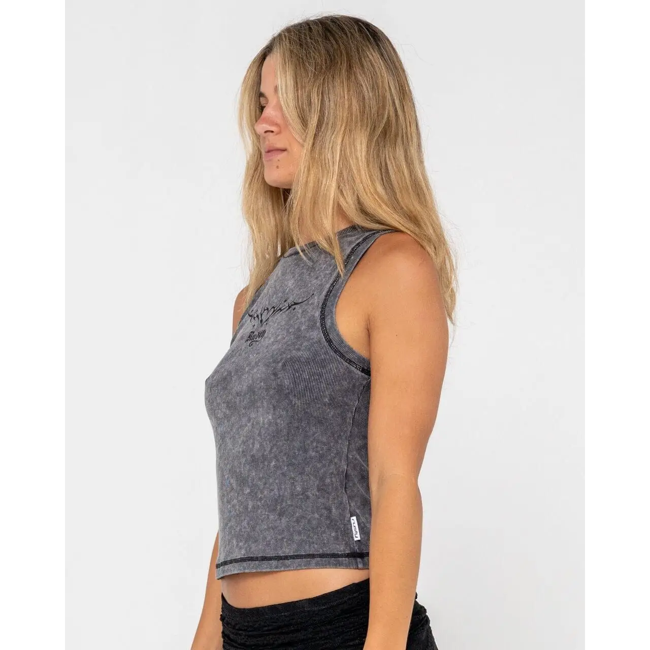 Rusty Mortys Graphic Tank Top features a washed back with a distressed look and a front print adorned with diamonte details, offering a cool, casual style.
