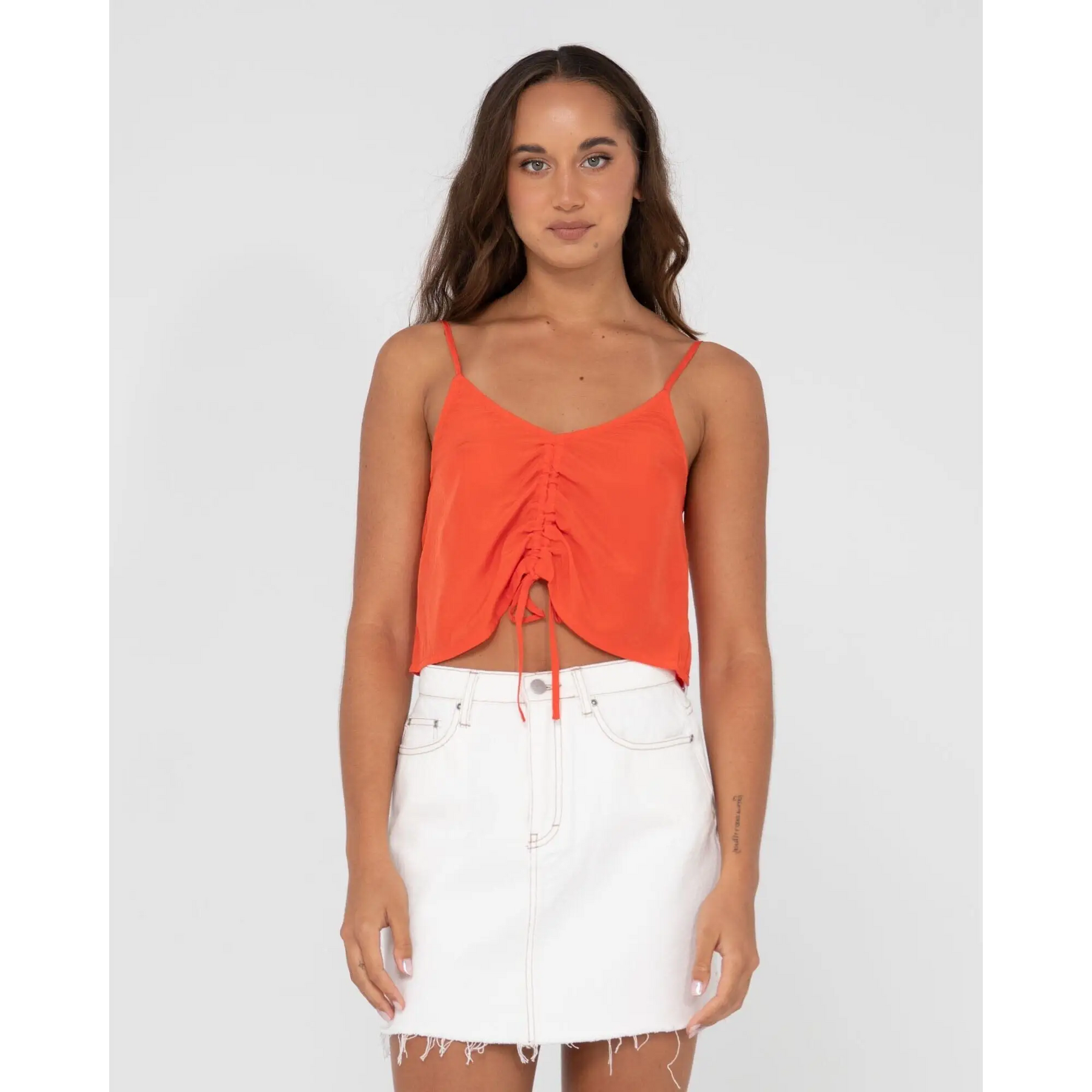 Slip Cami With Front Adjustable Ruching Tie Detail And Adjustable Straps.