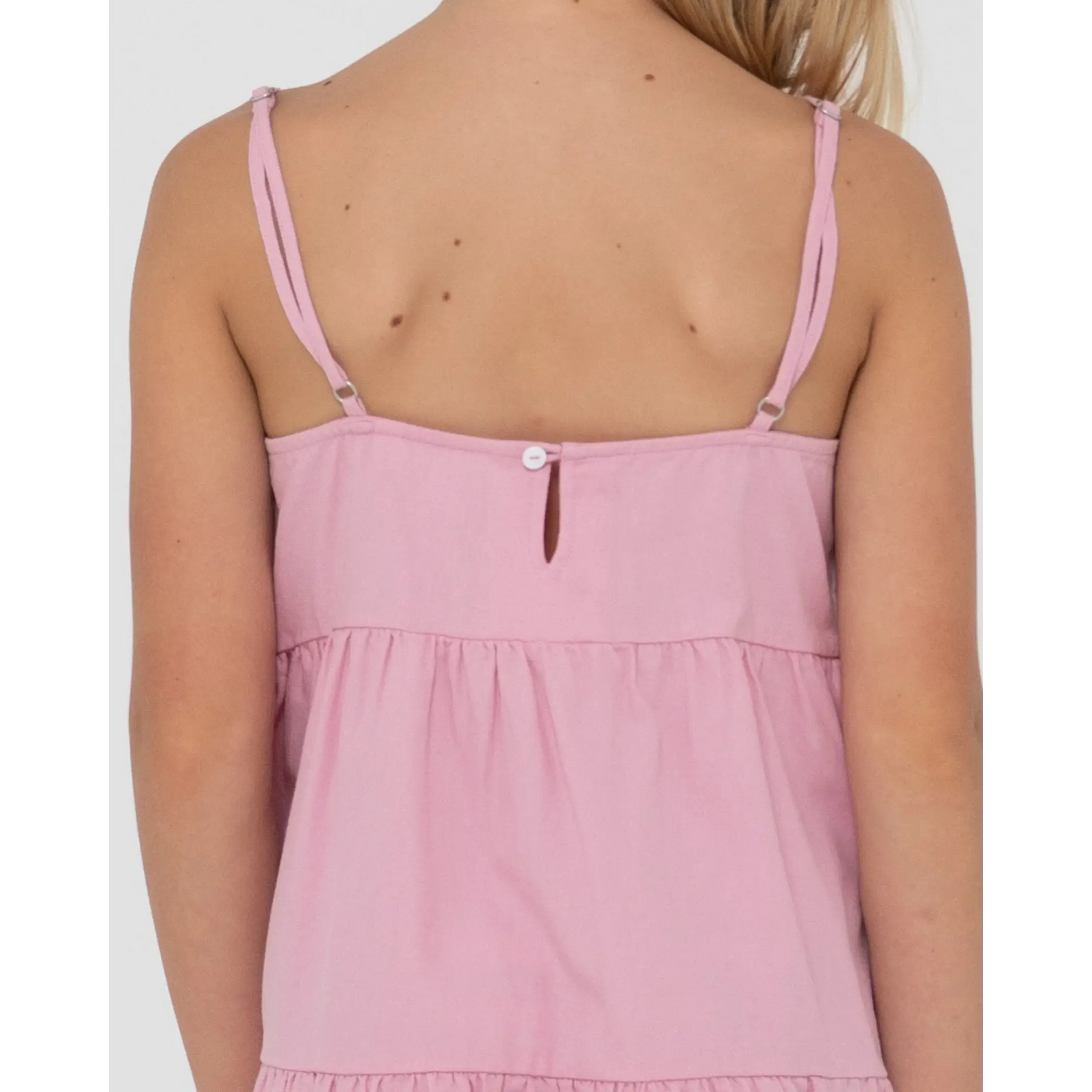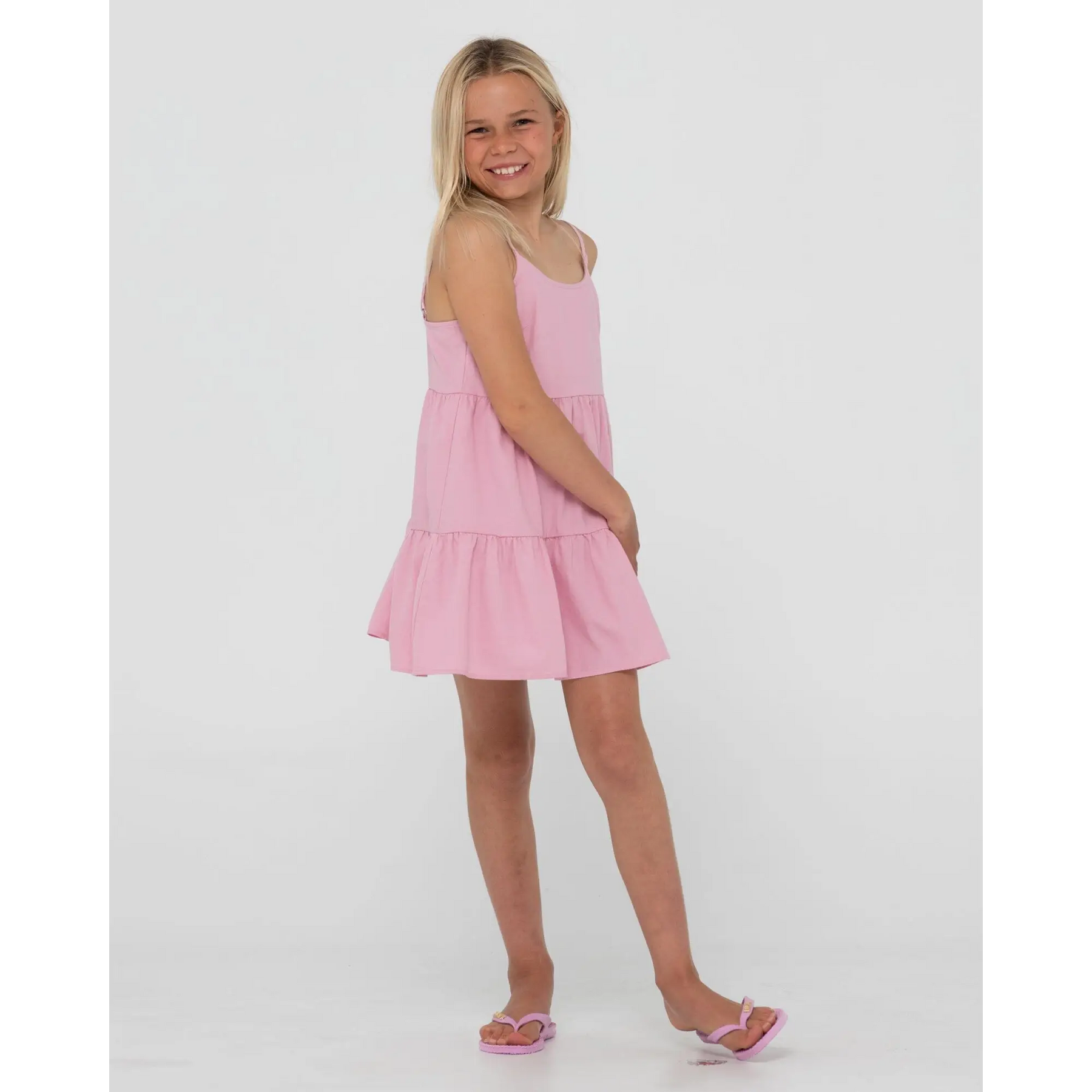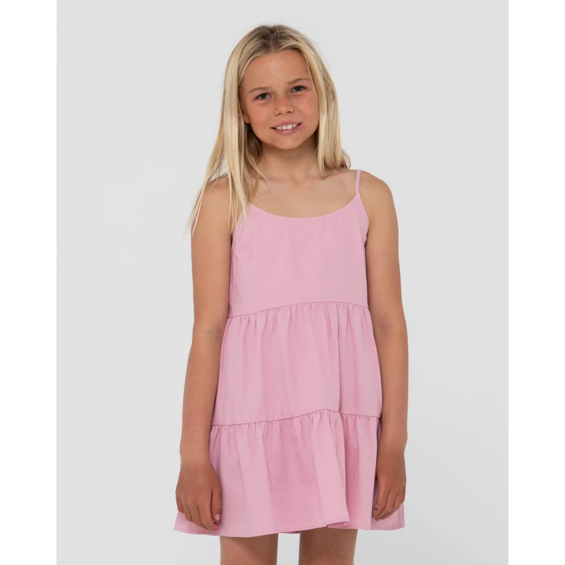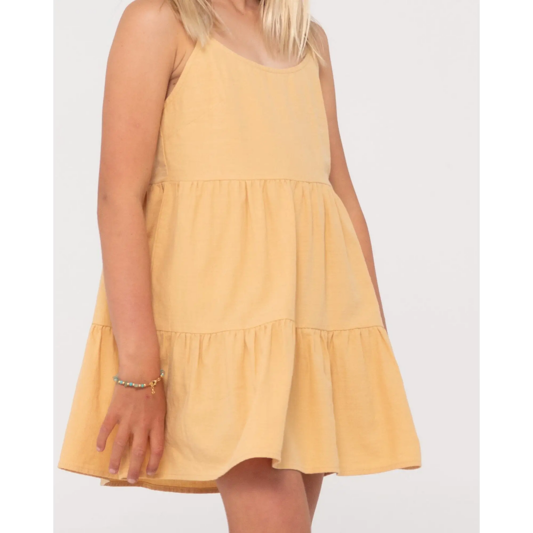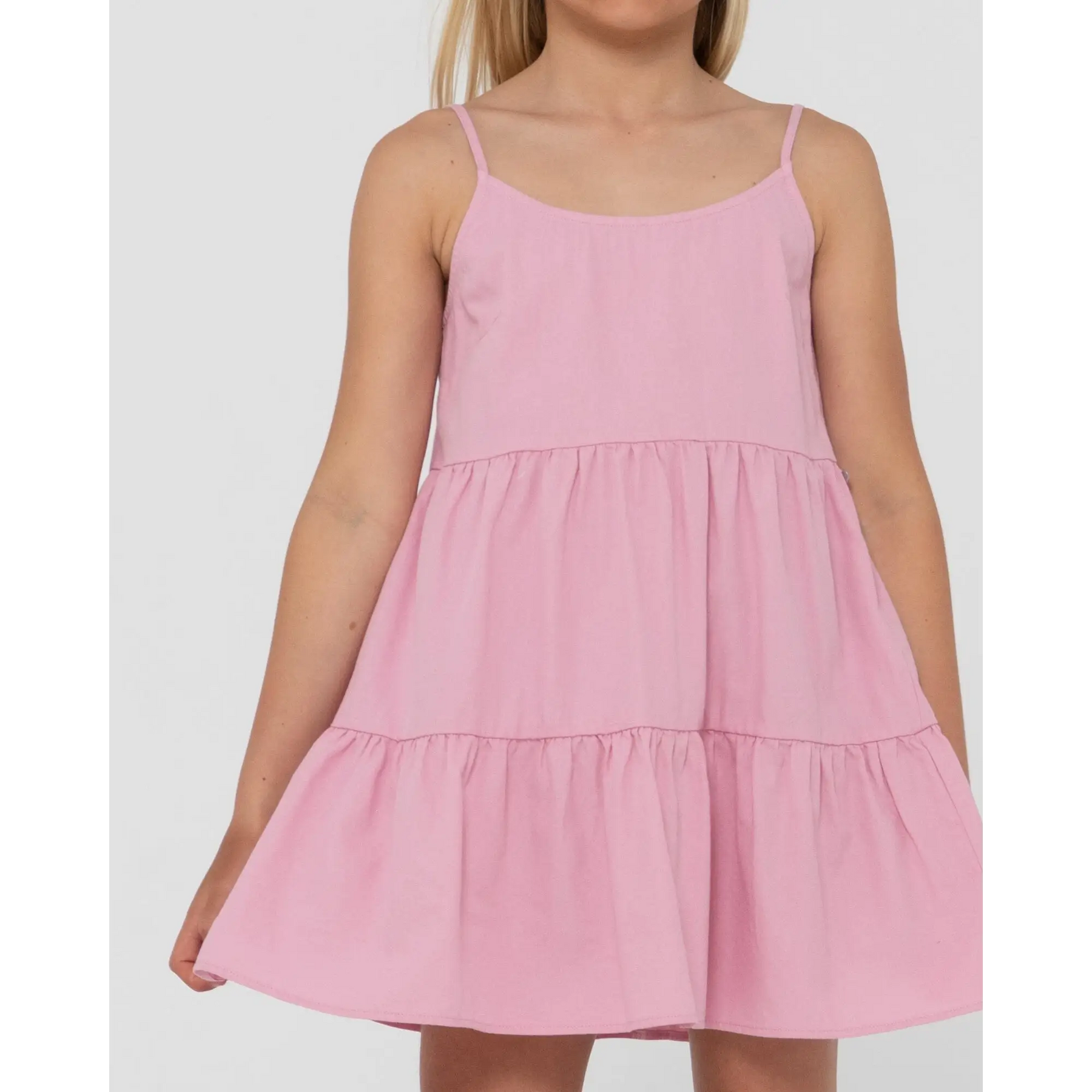 Round Neck Slip Dress With Tiered Panels And Adjustable Shoulder Straps.