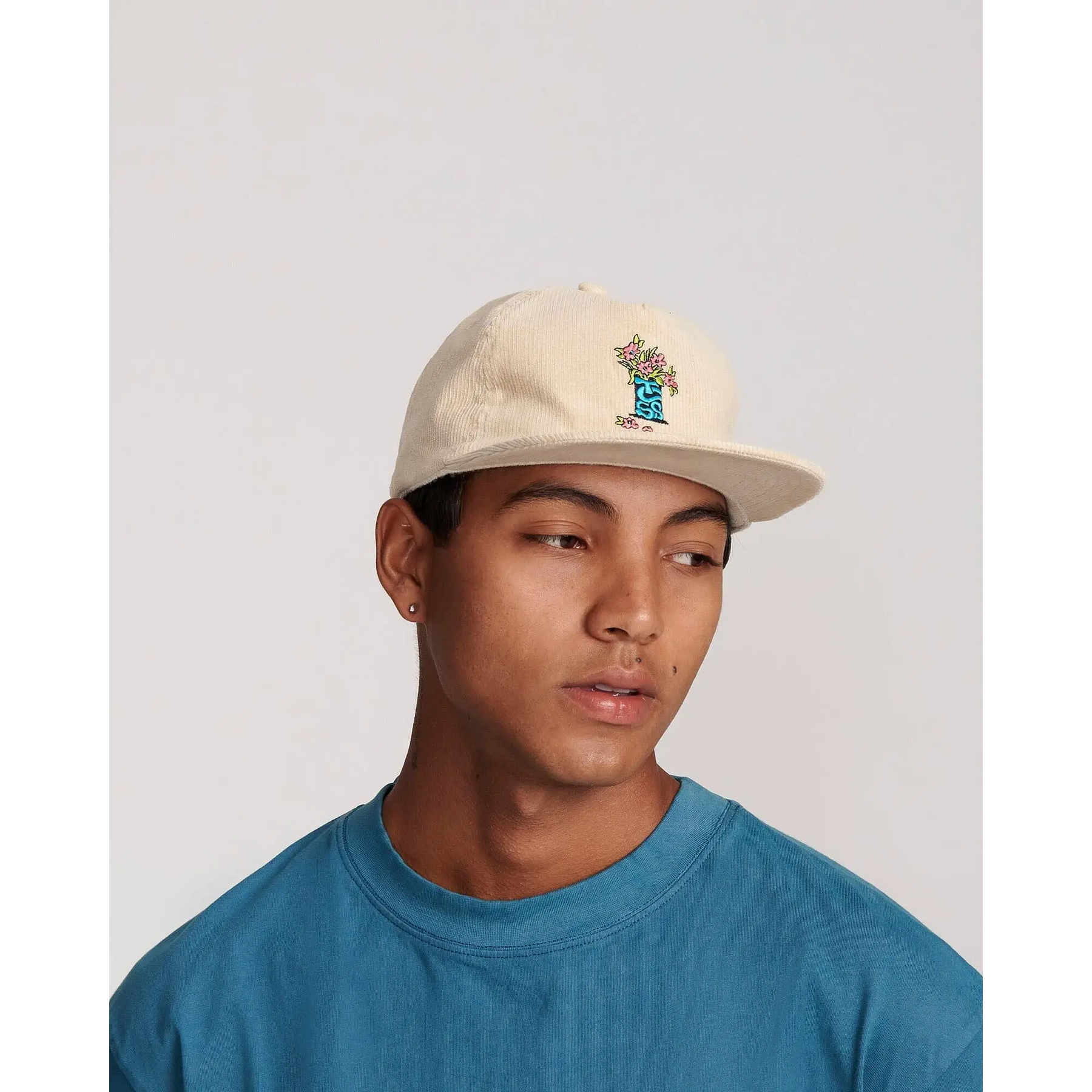 An 8 Wale Cotton Corduroy Cap with Bunched embroidery on the front. One size fits all. Snap Back closure.