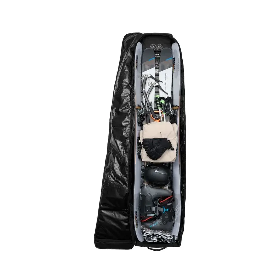 The world's first length-adjustable, compressible, rib protected, ski and snowboard bag and brand-defining Snowroller has been evolved. The Snowroller 2.0 is bigger, longer and deeper than its predecessor so it can now hold skis up to 203cm in length as well as your helmet. It also features new, bigger, puncture-proof custom wheels for smooth transporting both on snow and off.