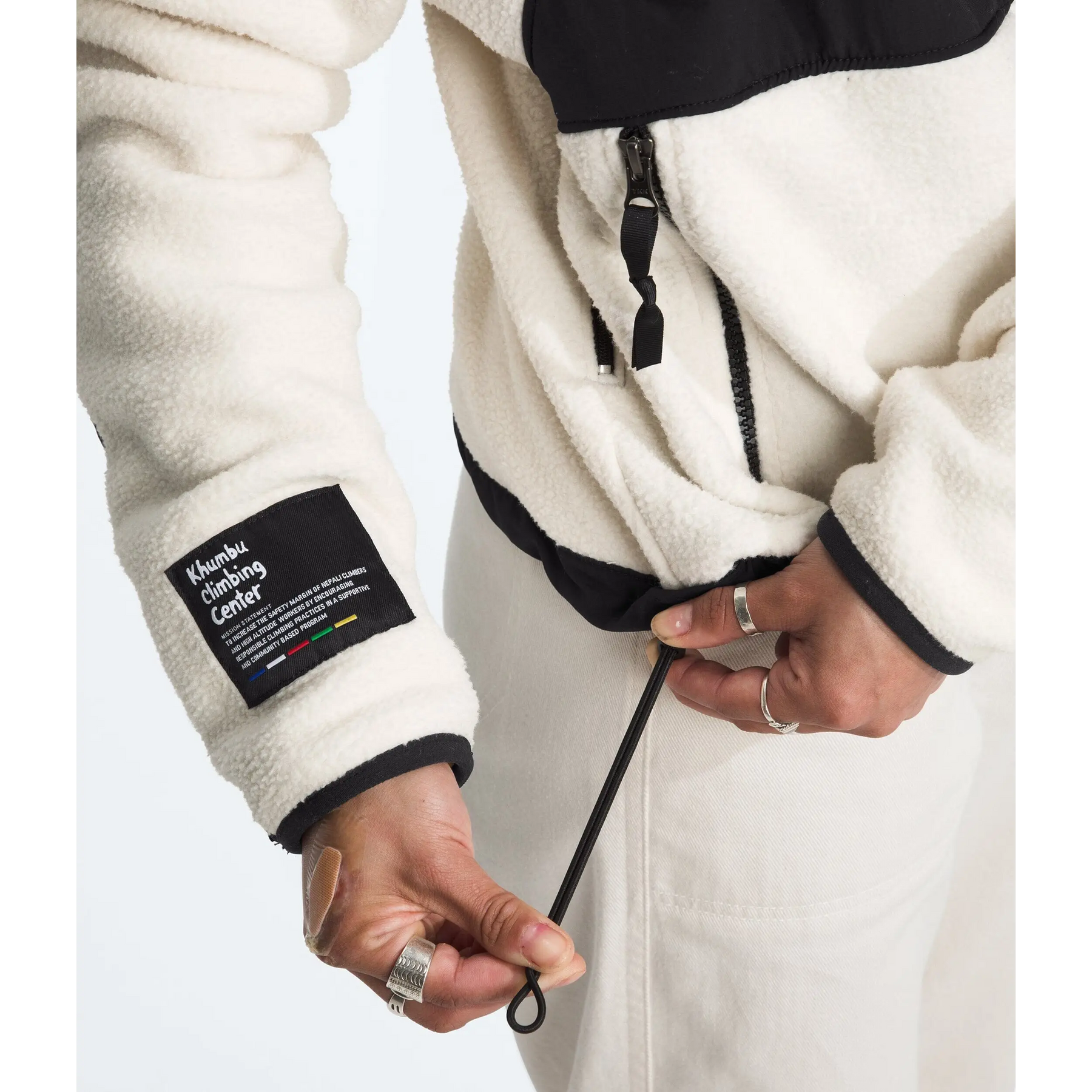 • Khumbu Climbing Center patch on left shoulder and lower-right sleeve