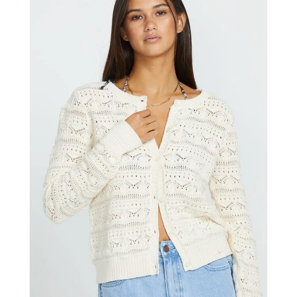 Volcom Baby Gurrl Cardi blending crochet texture with slim-fit layering ease.