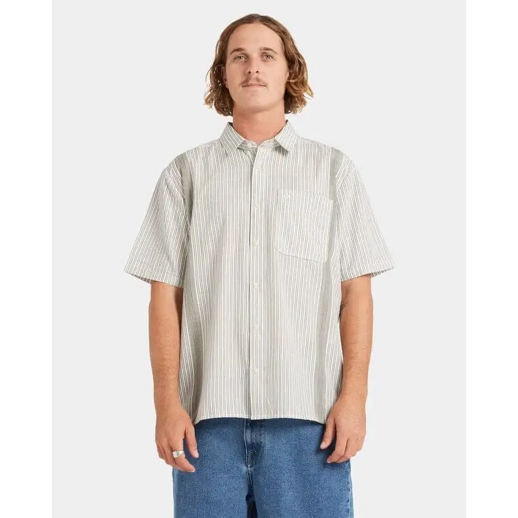 The Volcom Irving Shirt delivers breezy comfort through its 65% polyester 35% viscose blend that drapes softly without clinging. Boxy silhouette offers unrestricted arm movement for beach days or barbecues, while the left chest pocket adds practical storage for small essentials. Short sleeves and lightweight fabric keep you cool from morning surf checks to evening hangs. Structured yet casual, it layers easily or stands alone in summer heat.